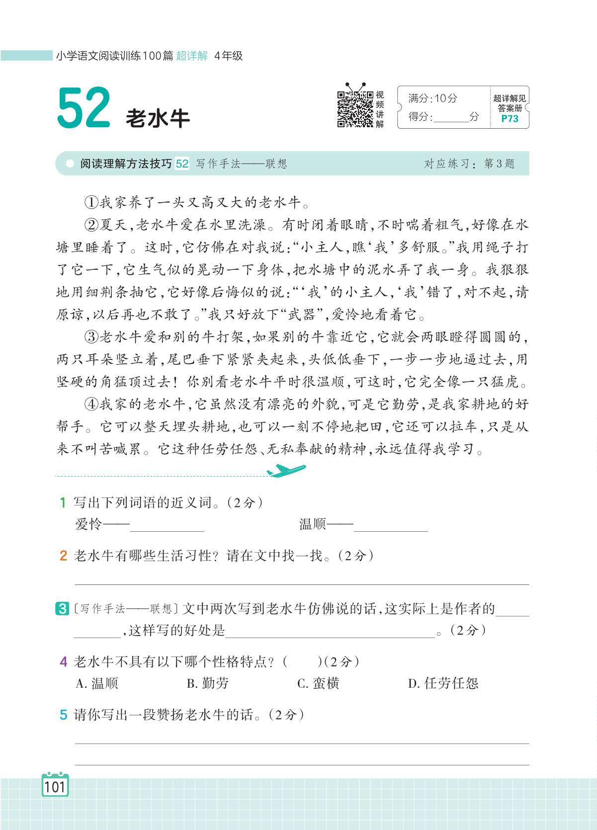 2024全一册四年级语文人教版 专题三 写景状物 52 老水牛