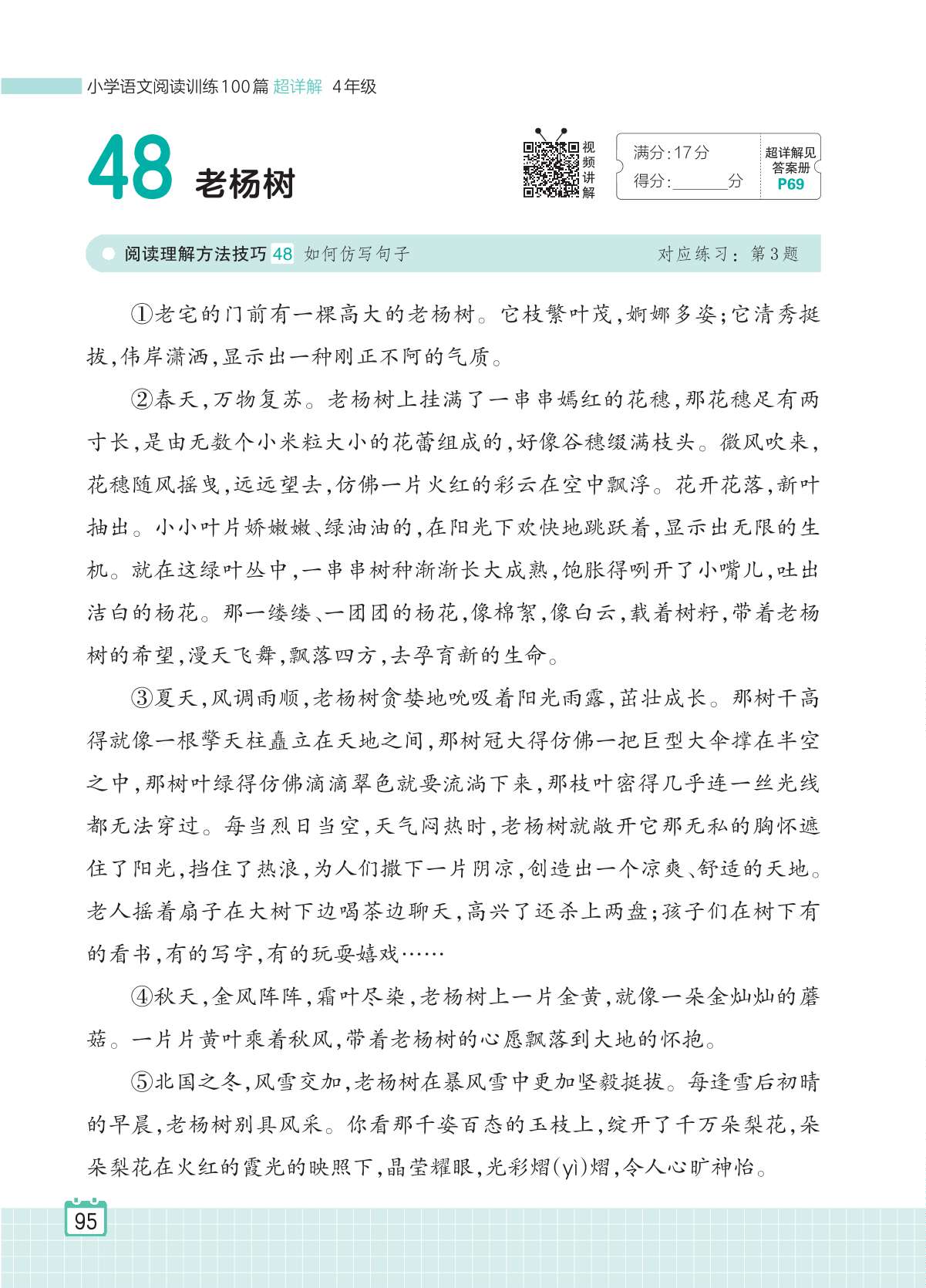 2024全一册四年级语文人教版 专题三 写景状物 48 老杨树