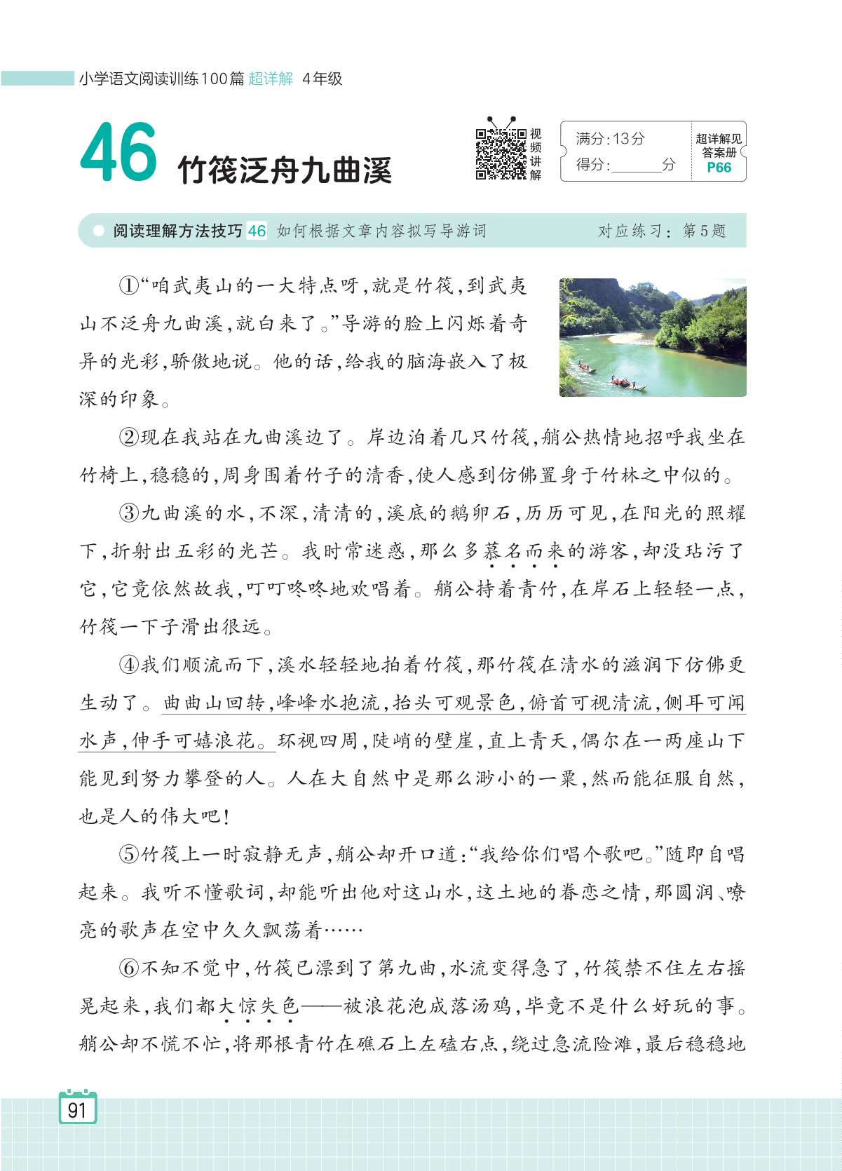 2024全一册四年级语文人教版 专题三 写景状物 46 竹筏泛舟九曲溪