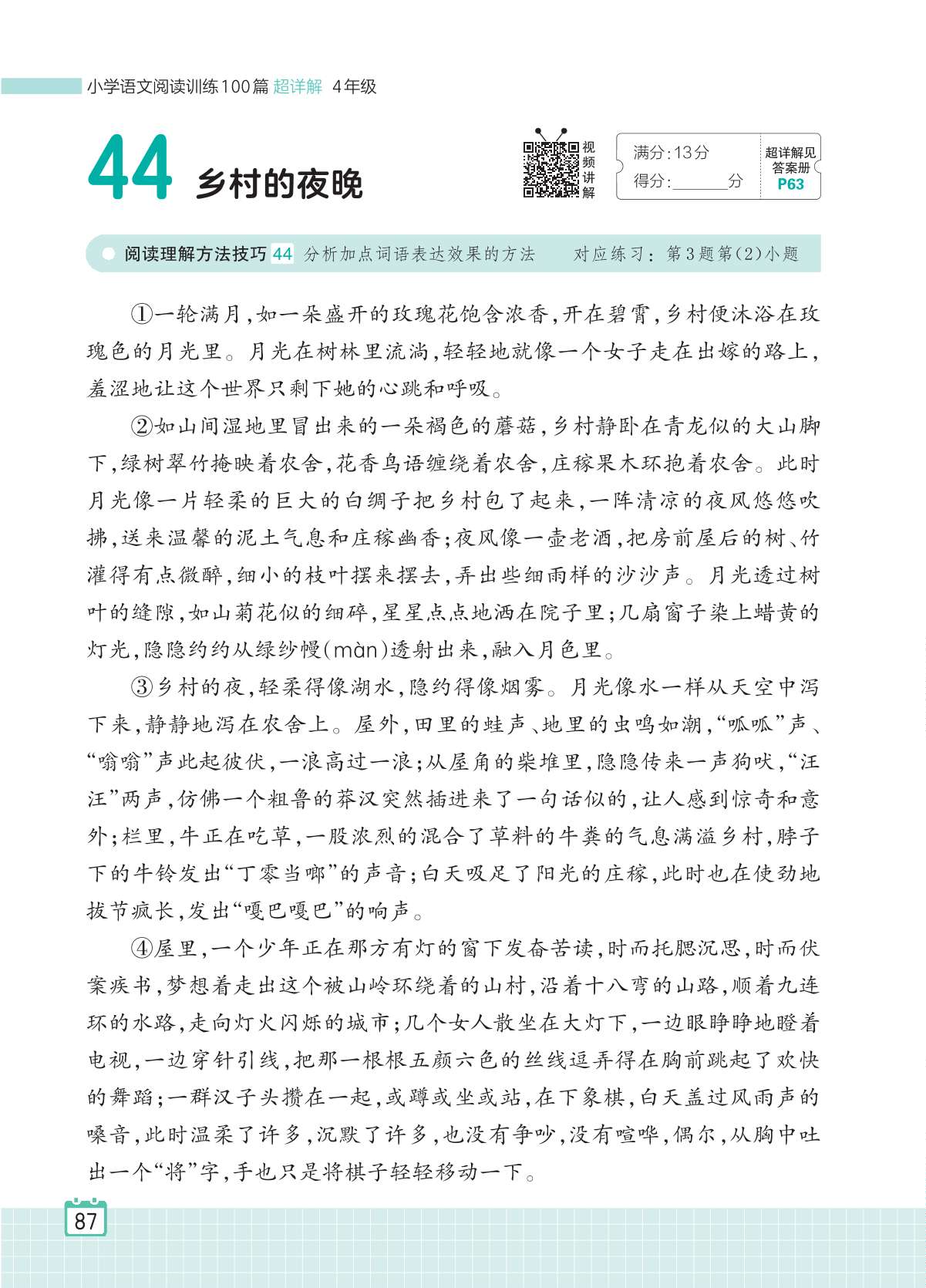 2024全一册四年级语文人教版 专题三 写景状物 44 乡村的夜晚