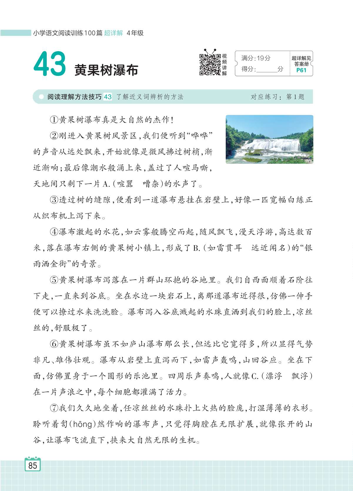 2024全一册四年级语文人教版 专题三 写景状物 43 黄果树瀑布