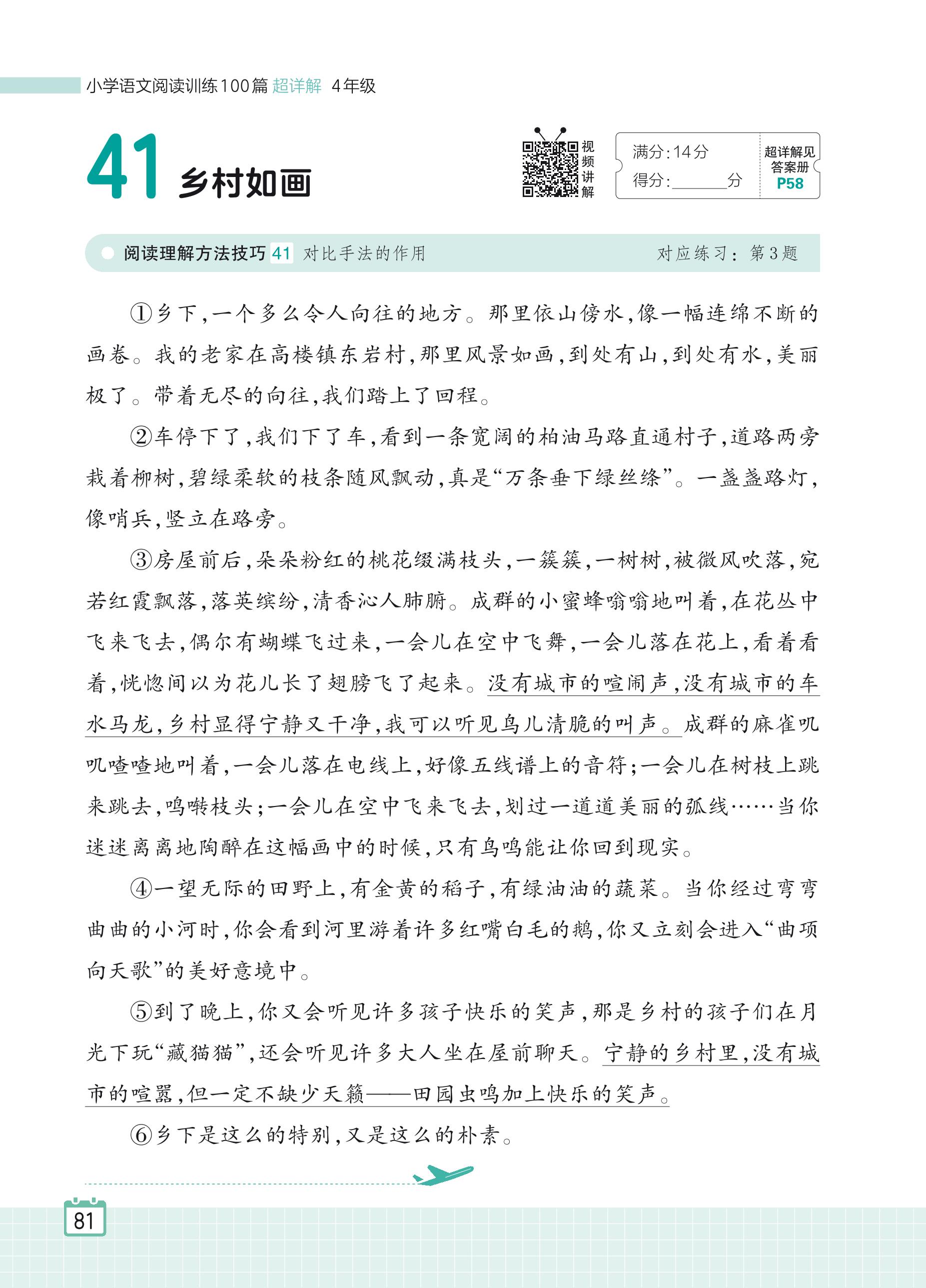 2024全一册四年级语文人教版 专题三 写景状物 41 乡村如画