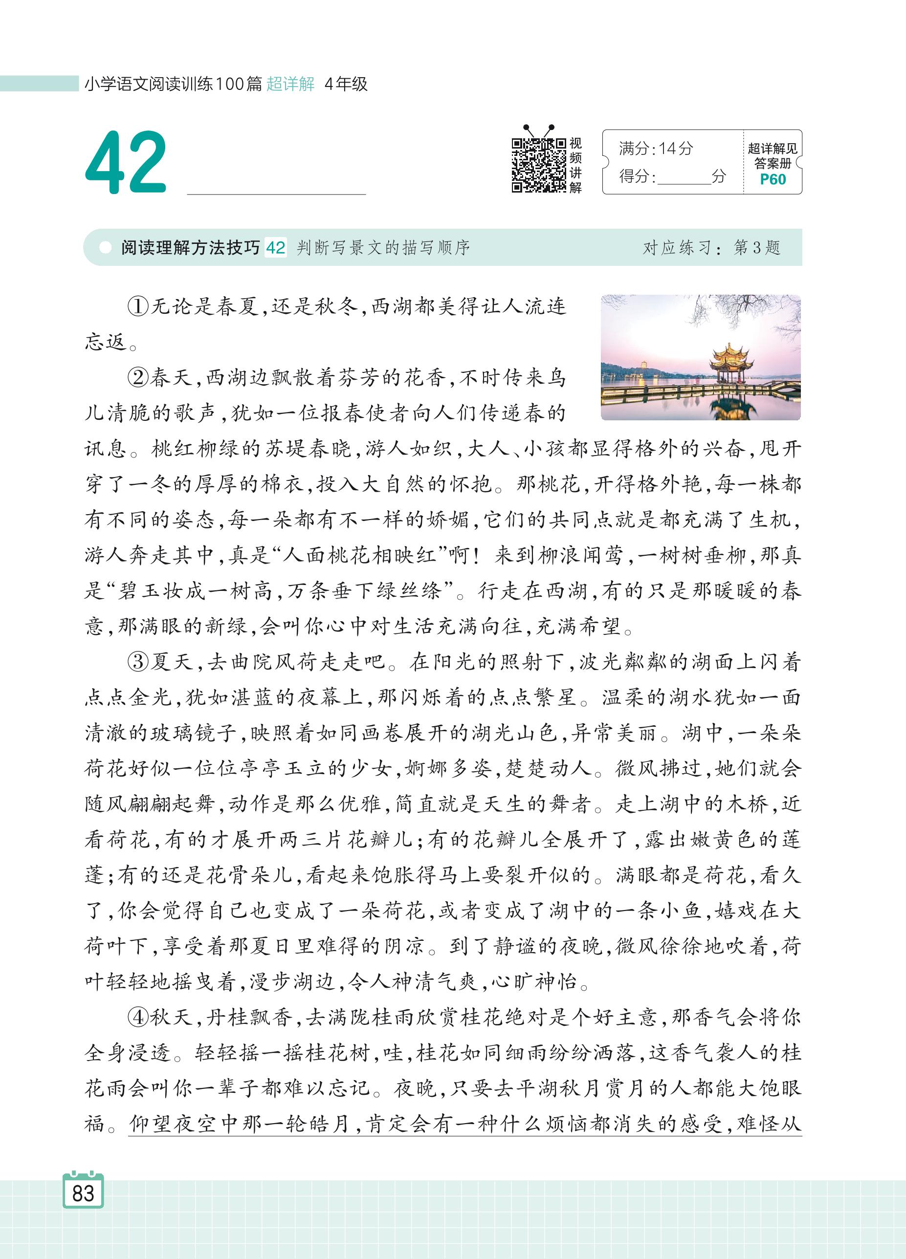 2024全一册四年级语文人教版 专题三 写景状物 42 ________