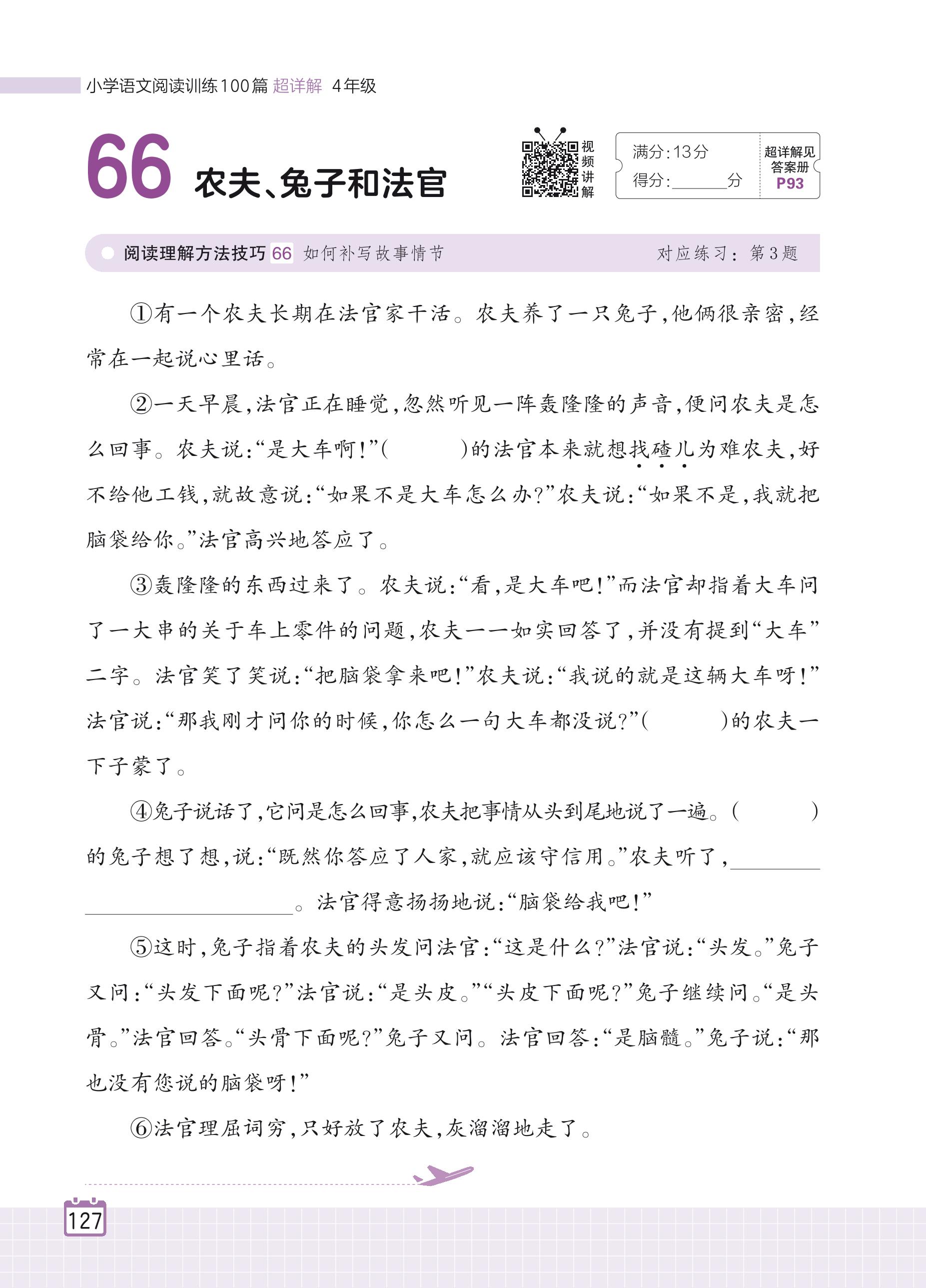 2024全一册四年级语文人教版 专题四 故事 66 农夫、兔子和法官