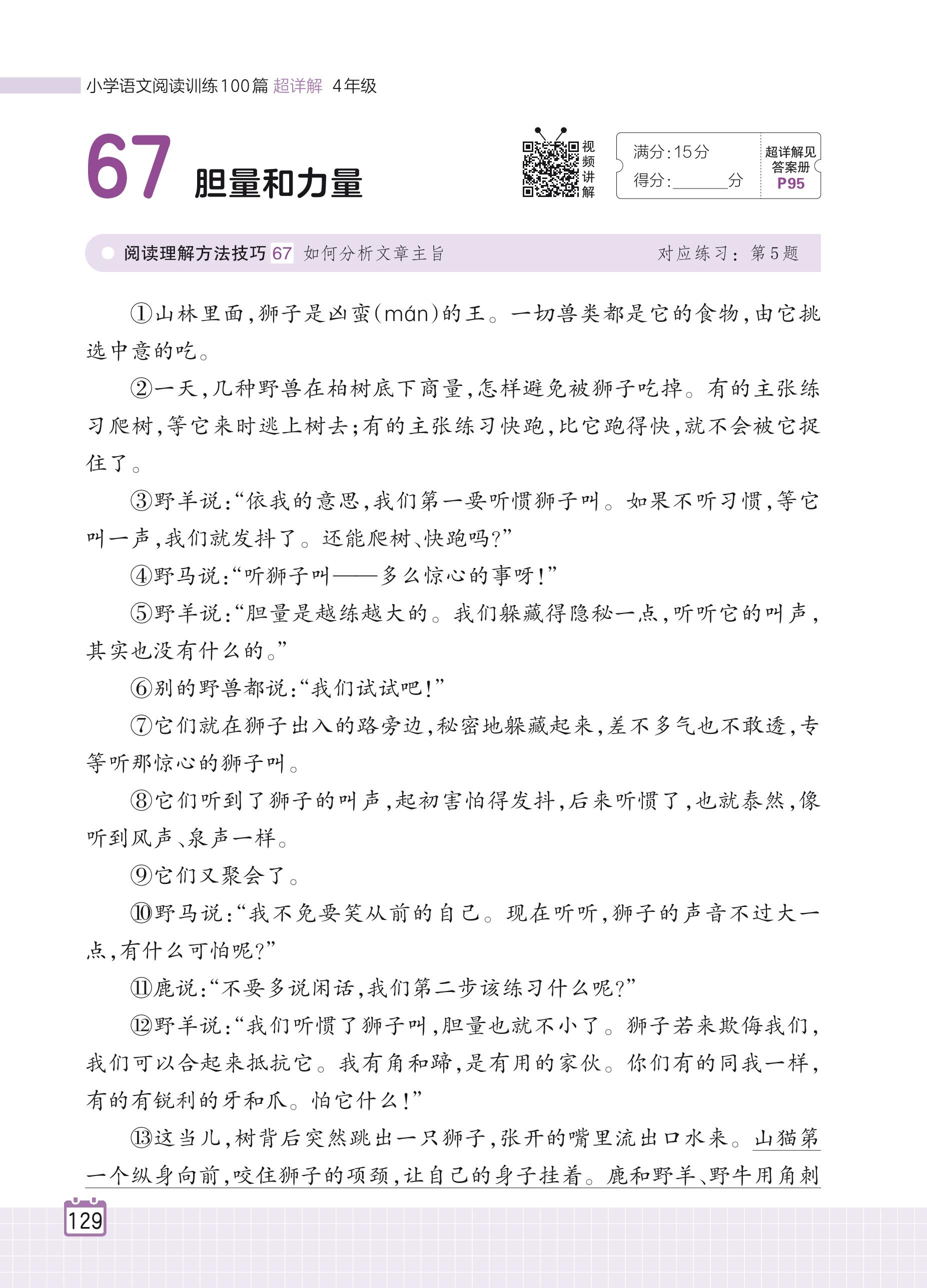 2024全一册四年级语文人教版 专题四 故事 67 胆量和力量
