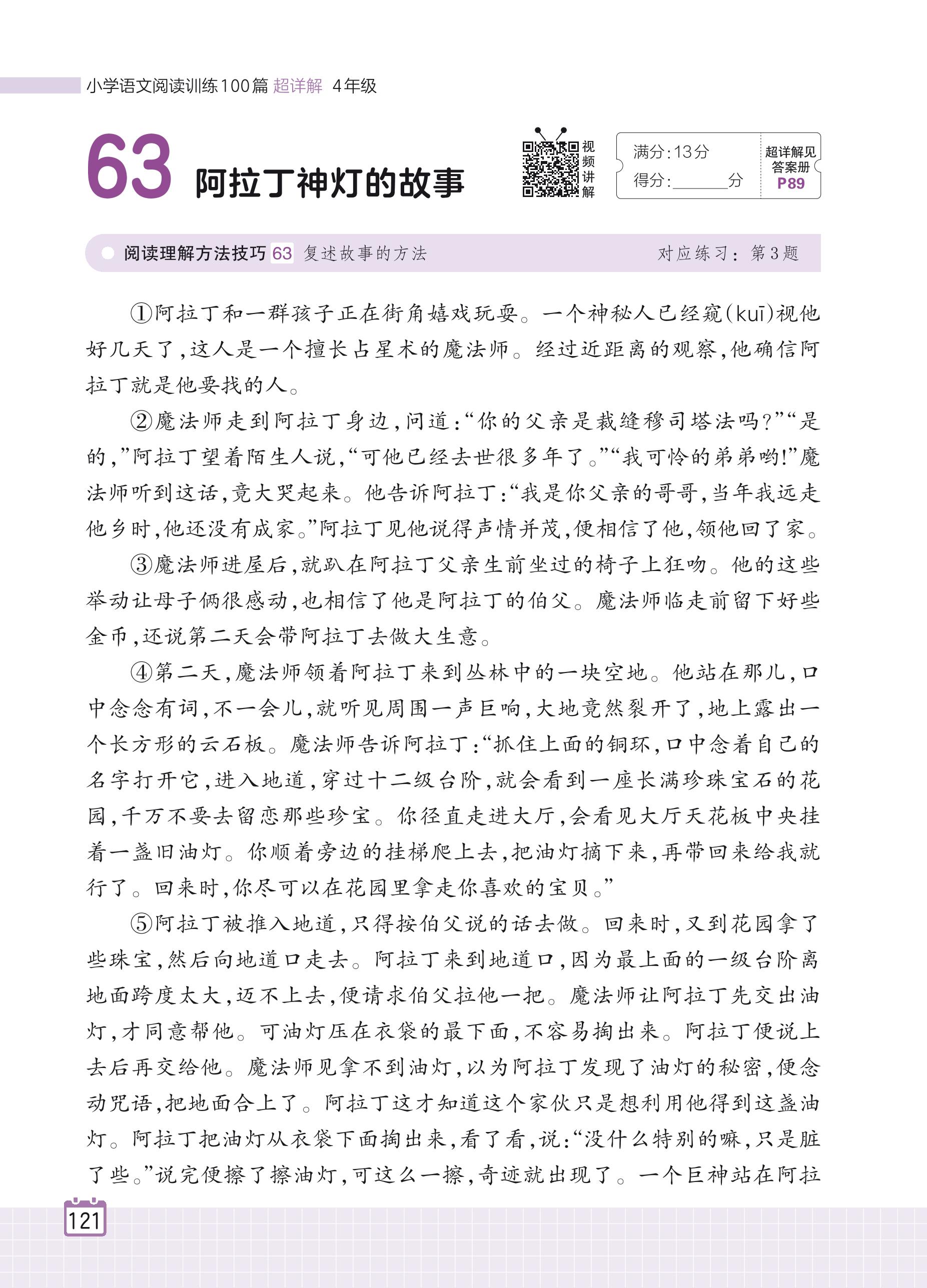 2024全一册四年级语文人教版 专题四 故事 63 阿拉丁神灯的故事