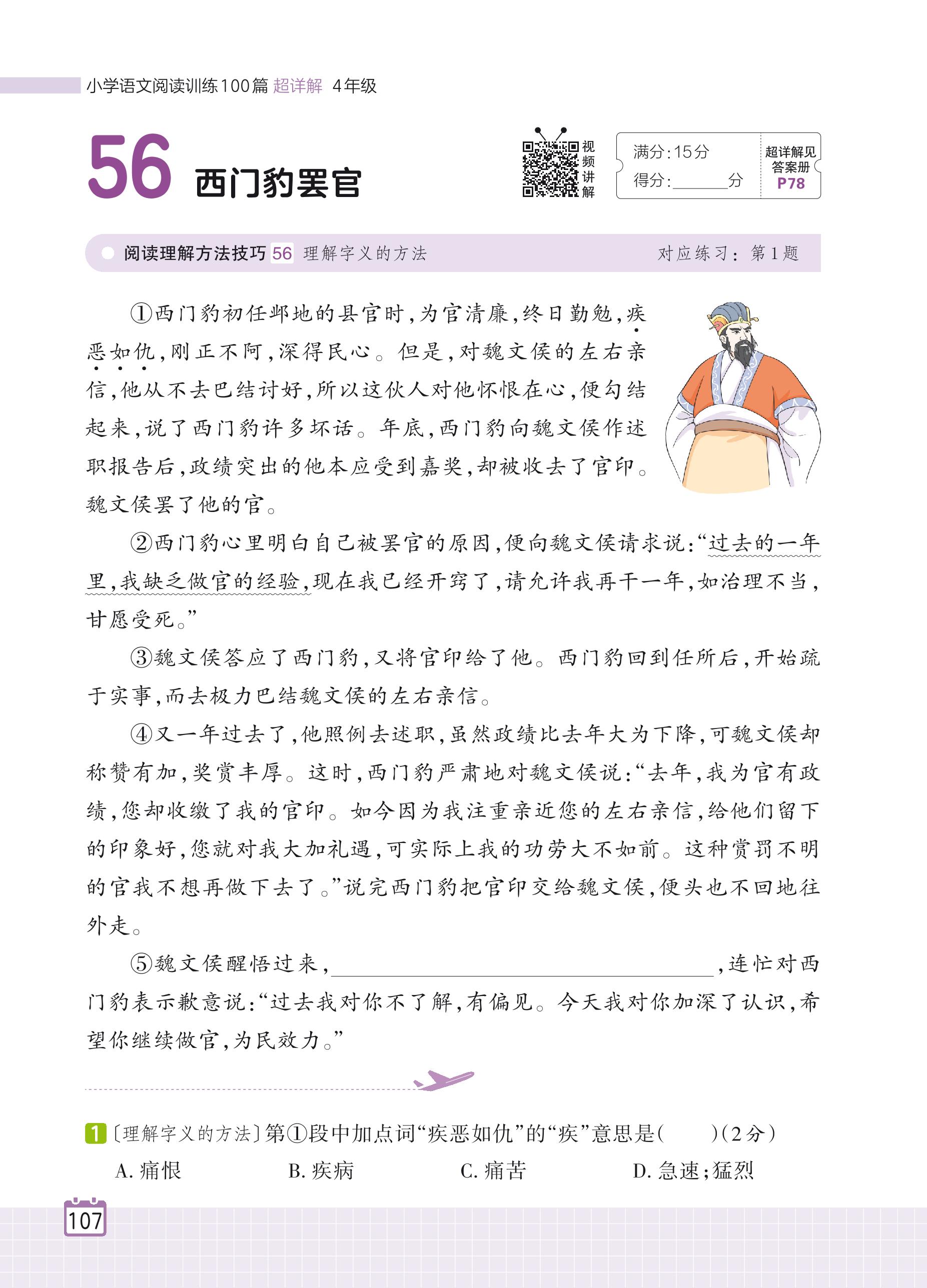 2024全一册四年级语文人教版 专题四 故事 56 西门豹罢官