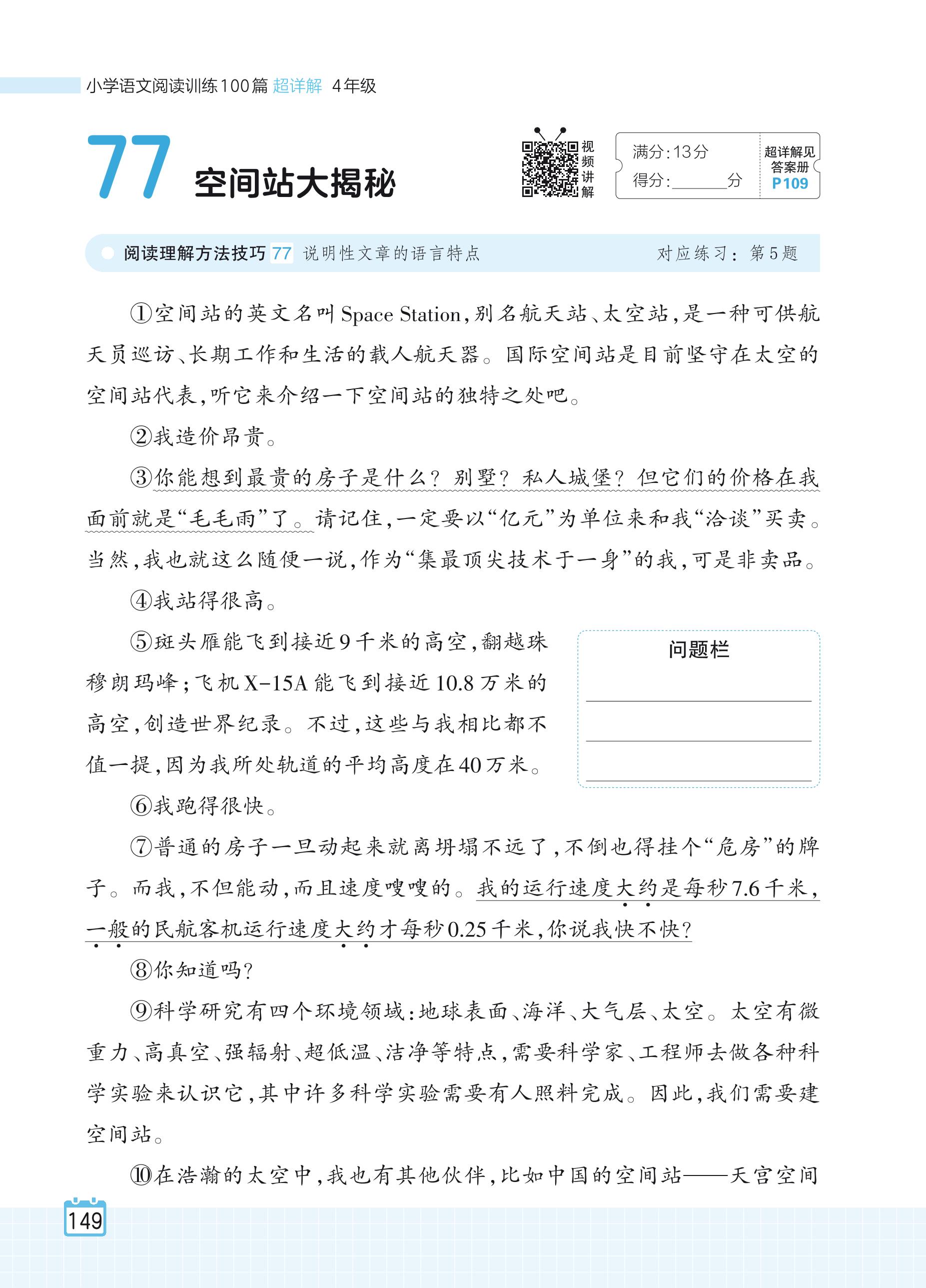 2024全一册四年级语文人教版 专题五 科普文 77 空间站大揭秘
