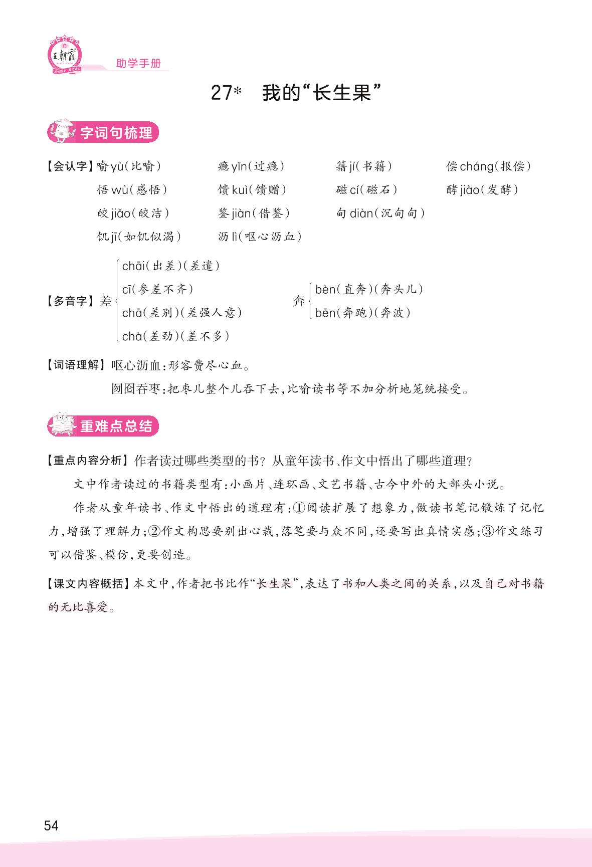 2023上册五年级语文人教版 助学手册 第八单元——27 我的“长生果”