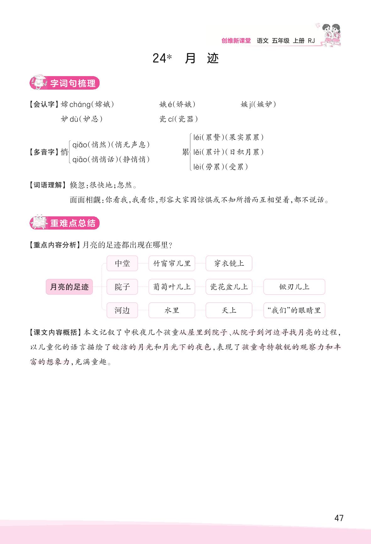 2023上册五年级语文人教版 助学手册 第七单元——24 月迹
