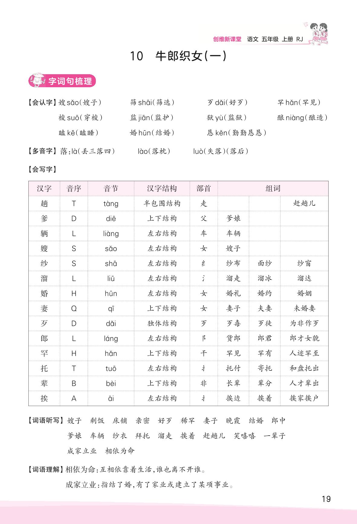 2023上册五年级语文人教版 助学手册 第三单元——10 牛郎织女(一)