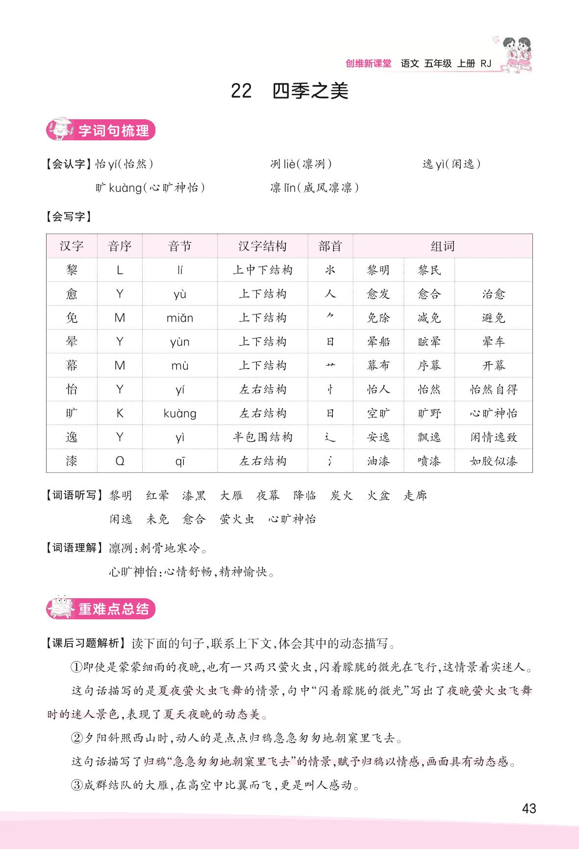 2023上册五年级语文人教版 助学手册 第七单元——22 四季之美