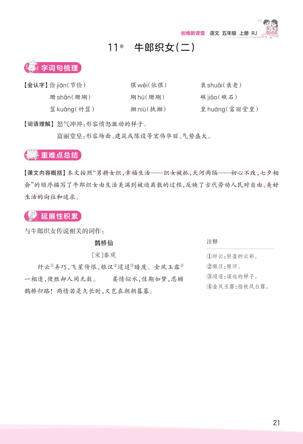 2023上册五年级语文人教版 助学手册 第三单元——11 牛郎织女(二)
