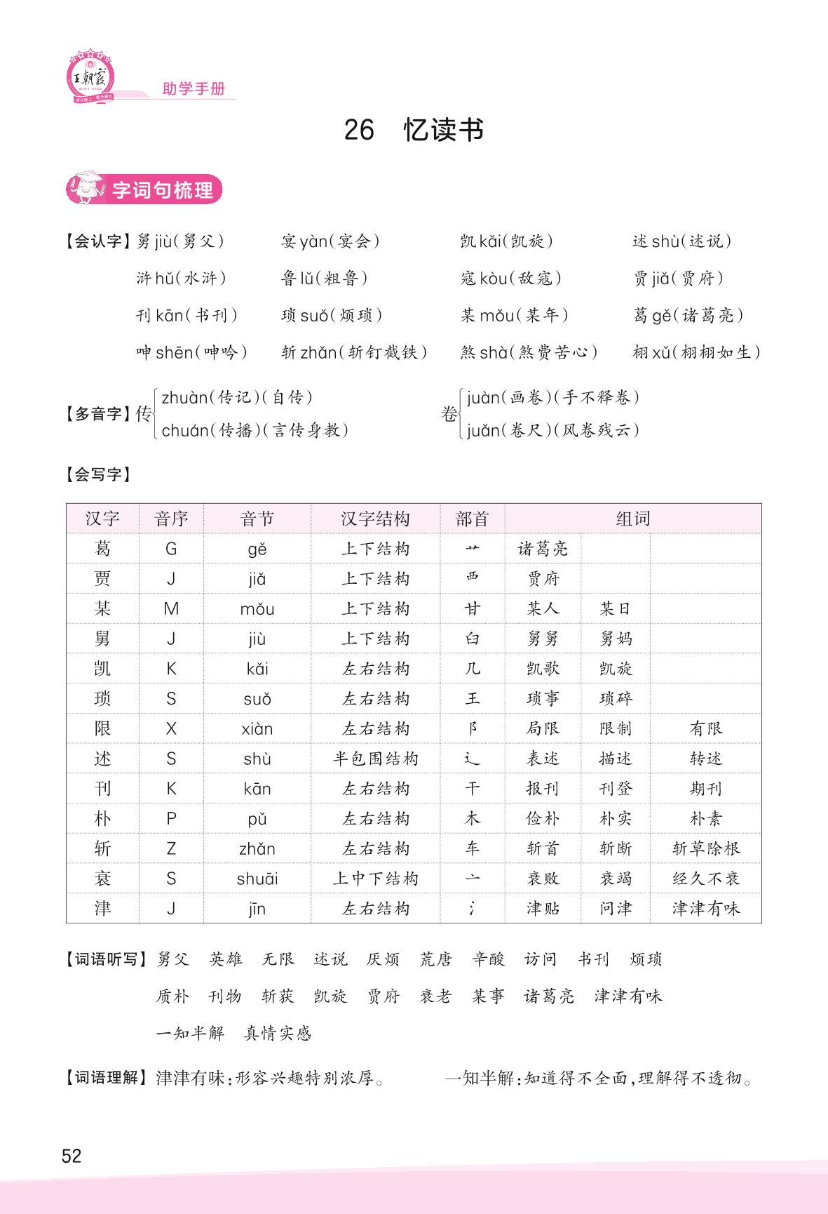 2023上册五年级语文人教版 助学手册 第八单元——26 忆读书
