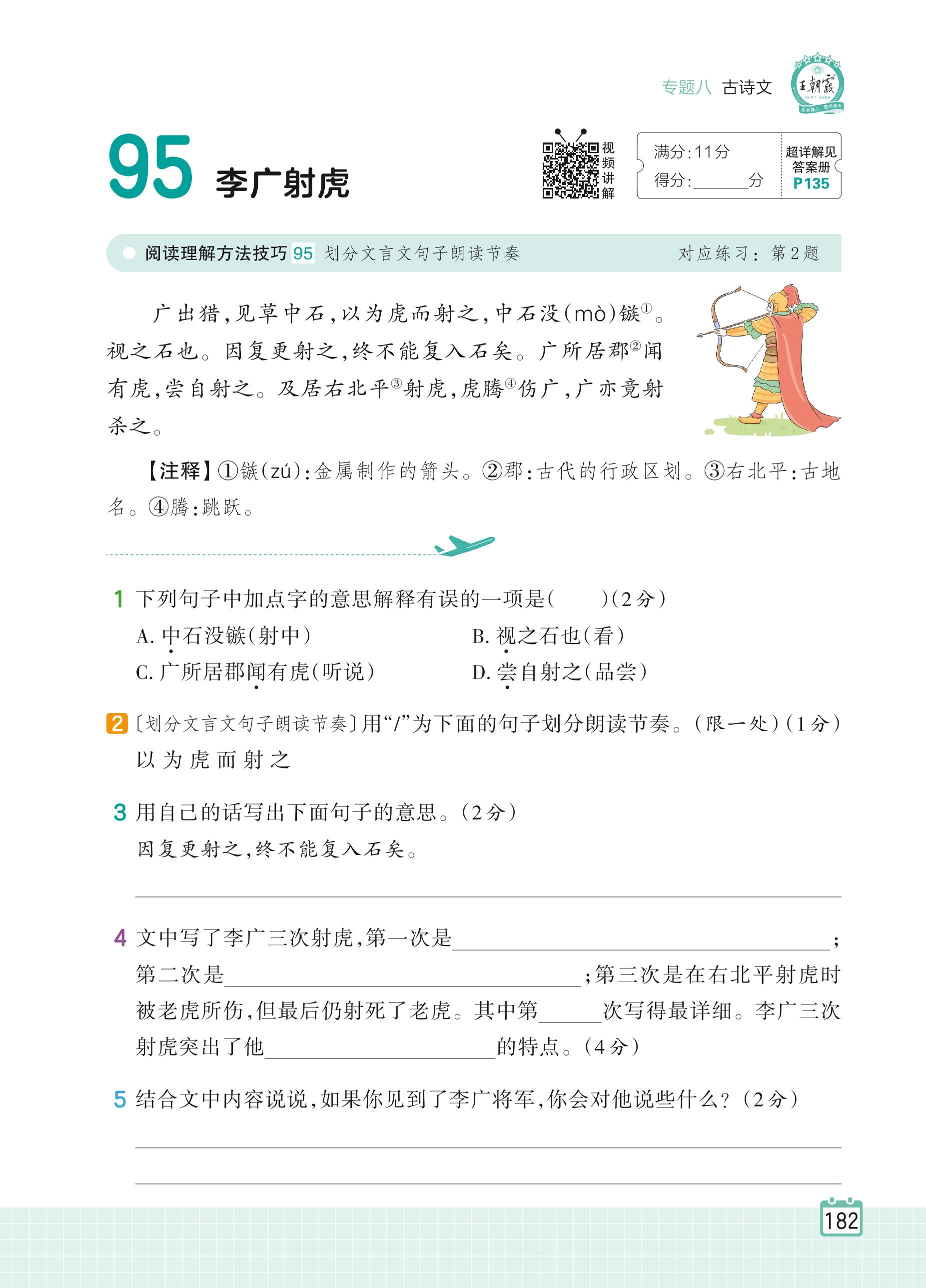 2024全一册四年级语文人教版 专题八 古诗文 95 李广射虎