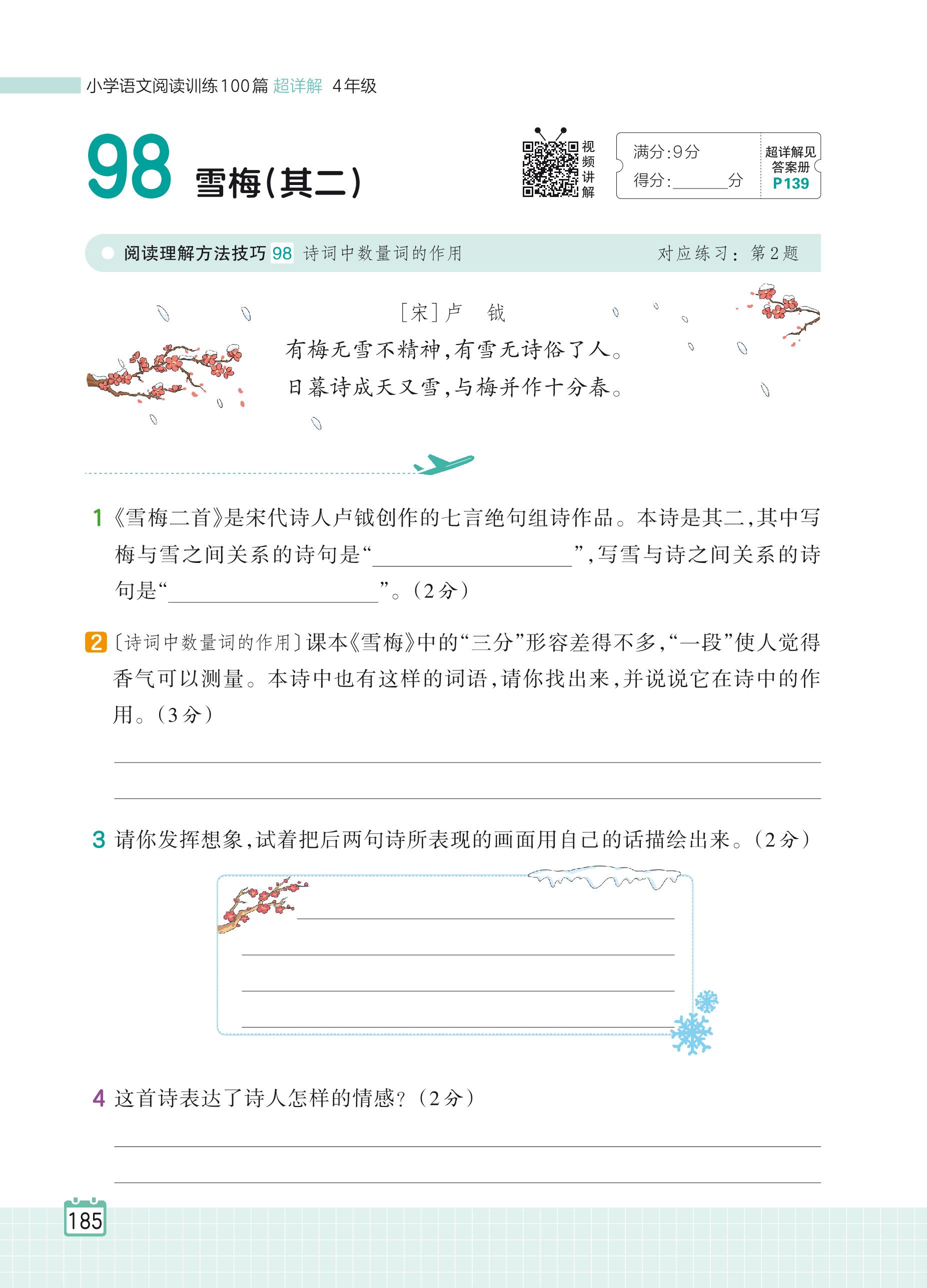 2024全一册四年级语文人教版 专题八 古诗文 98 雪梅(其二)