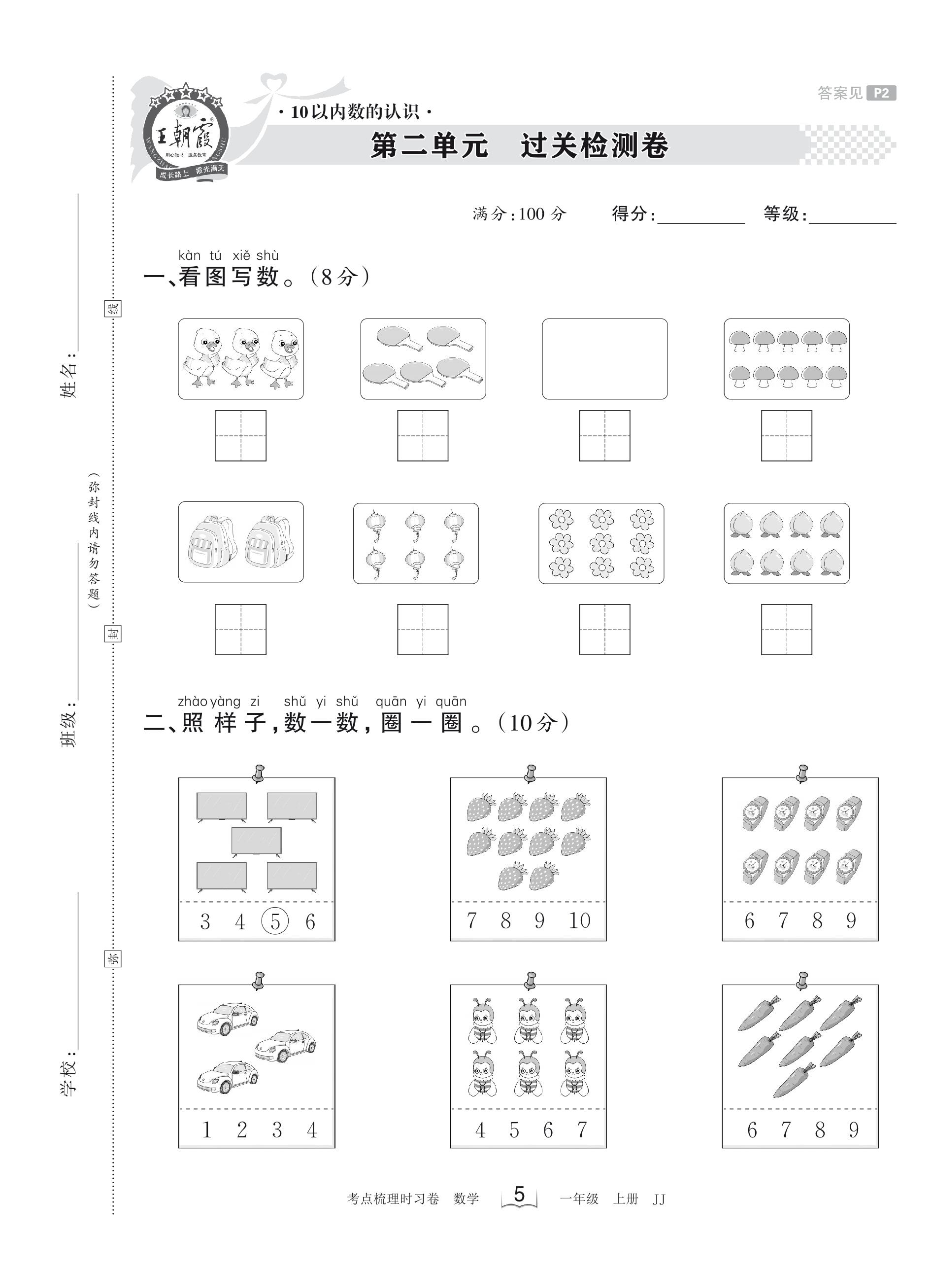 2023上册一年级数学冀教版 第二单元 过关检测卷