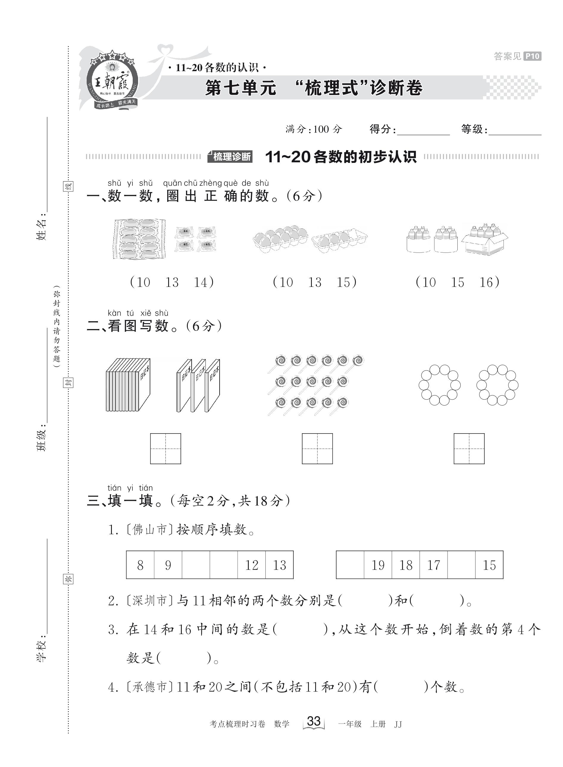 2023上册一年级数学冀教版 第七单元 “梳理式”诊断卷