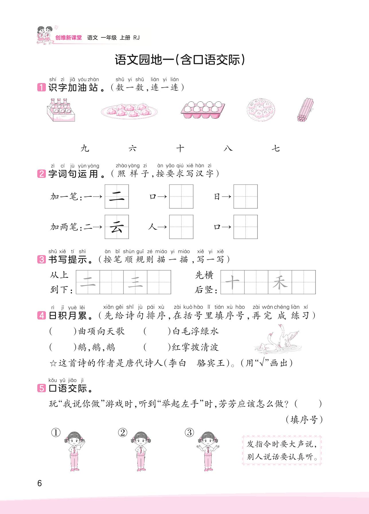 2023上册一年级语文人教版 第一单元 识字——语文园地一[含口语交际]