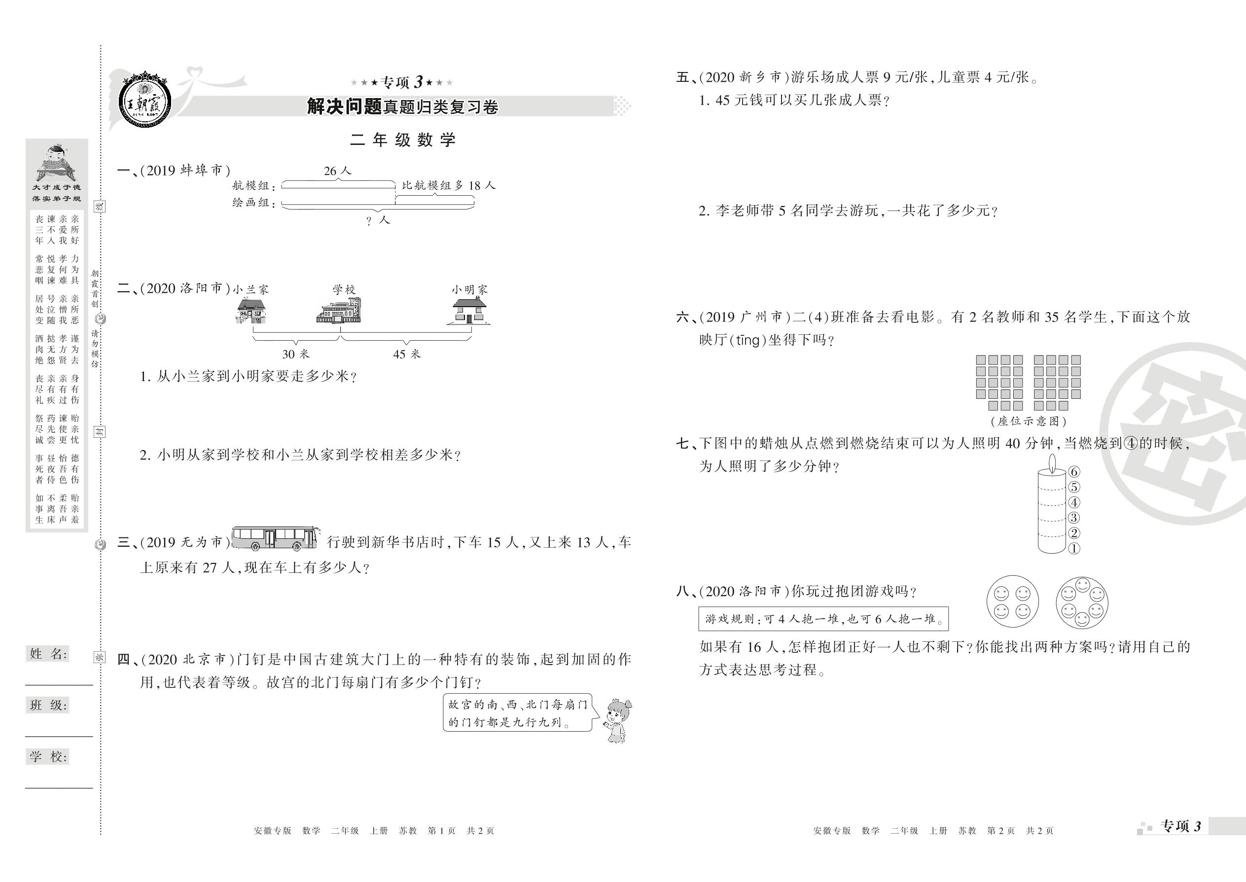 王朝霞期末专项卷——解决问题真题归类复习、新颖题速递:生活与数学二年级上册数学(苏教版)