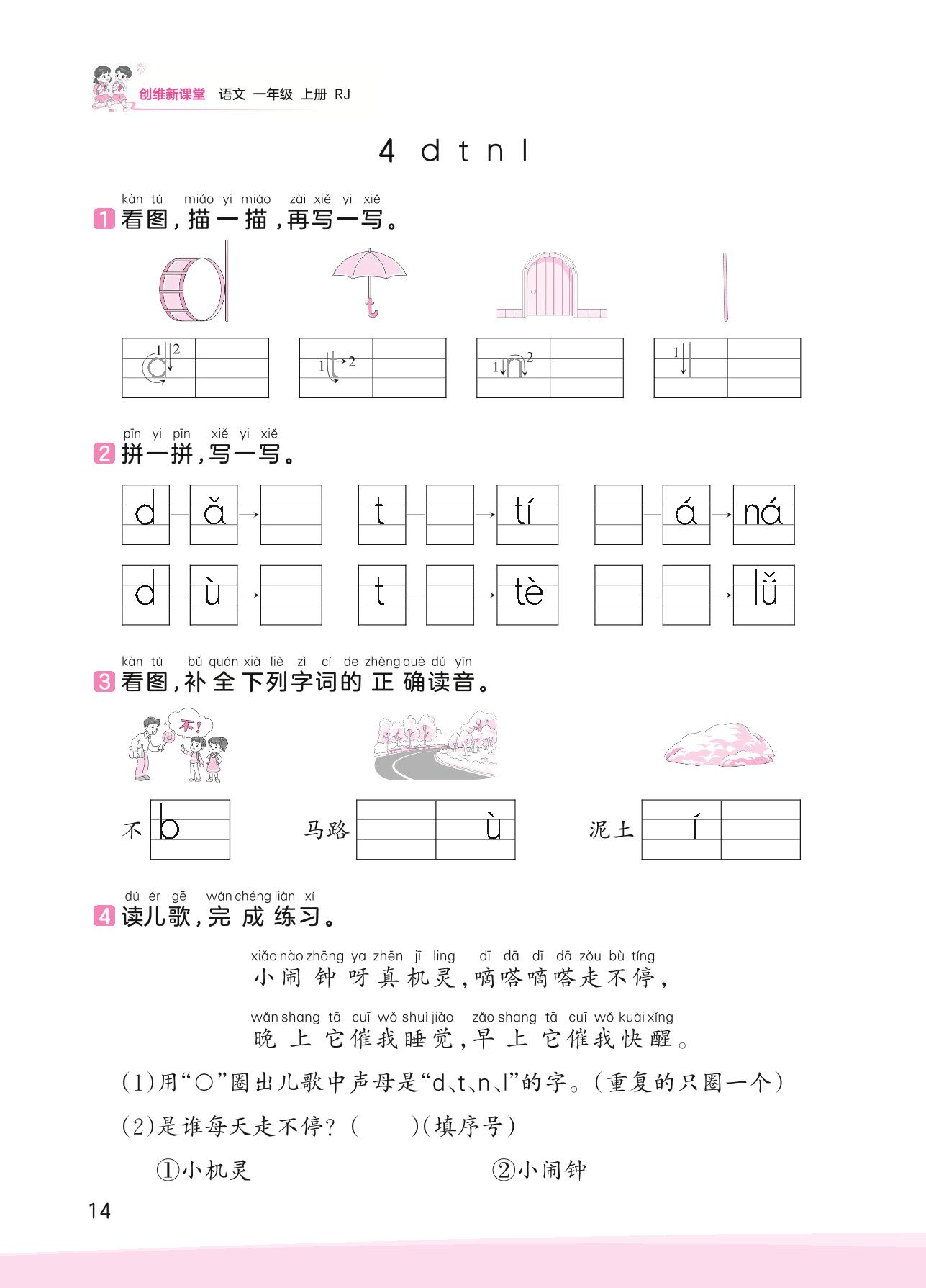 2023上册一年级语文人教版 第二单元 汉语拼音——4 d t n l