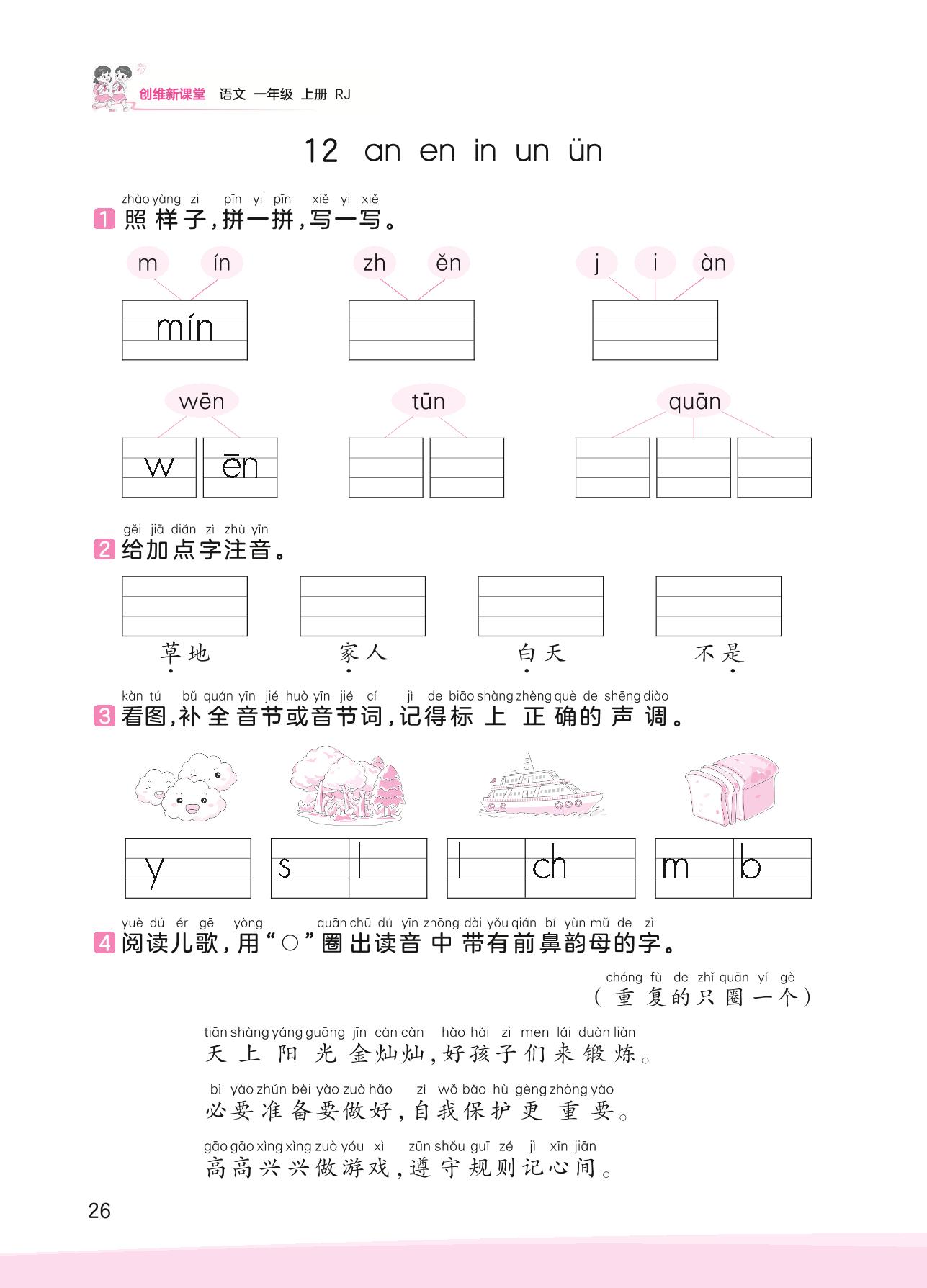 2023上册一年级语文人教版 第三单元 汉语拼音——12 ɑn en in un ün