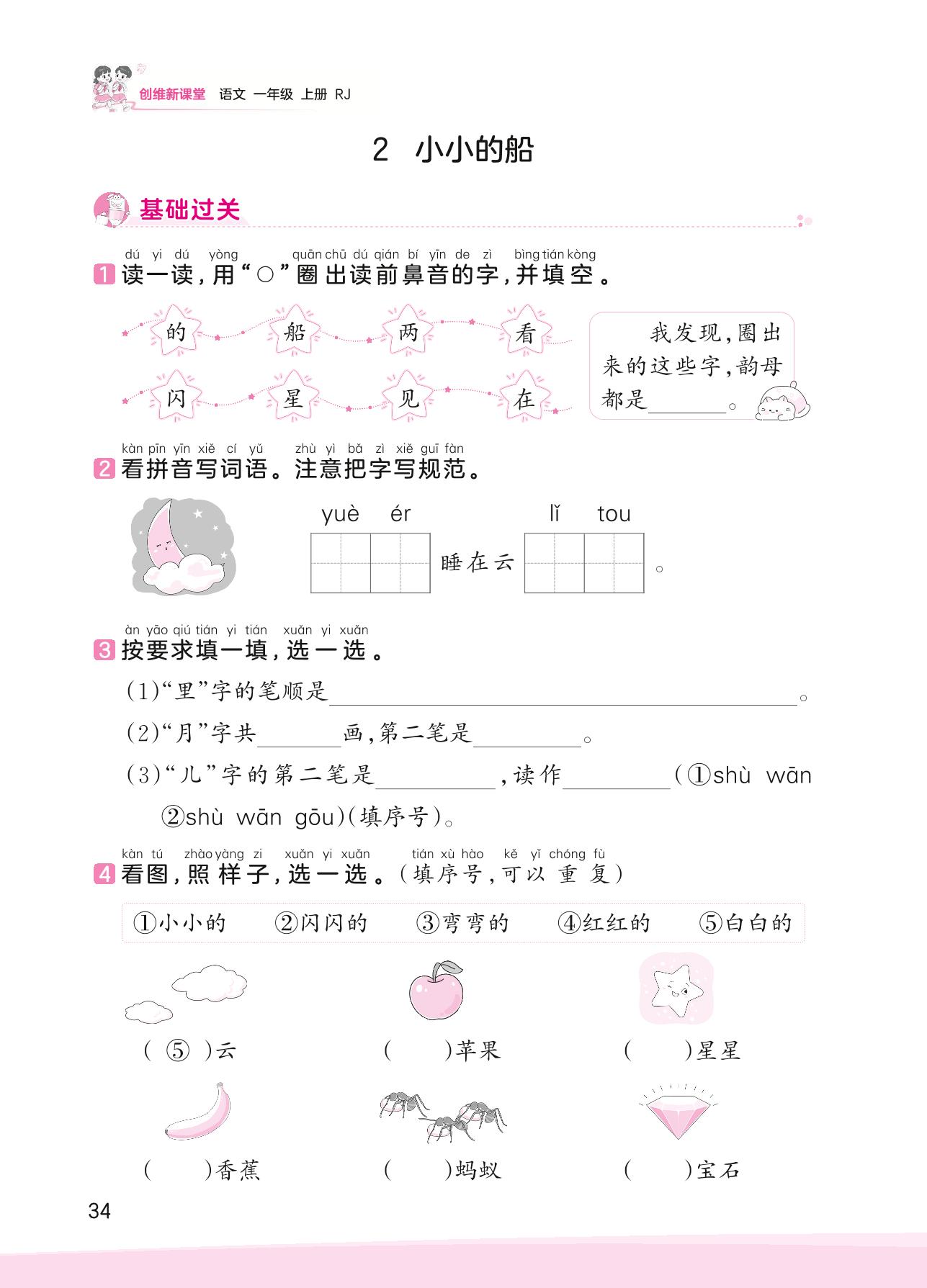 2023上册一年级语文人教版 第四单元 自然——2 小小的船