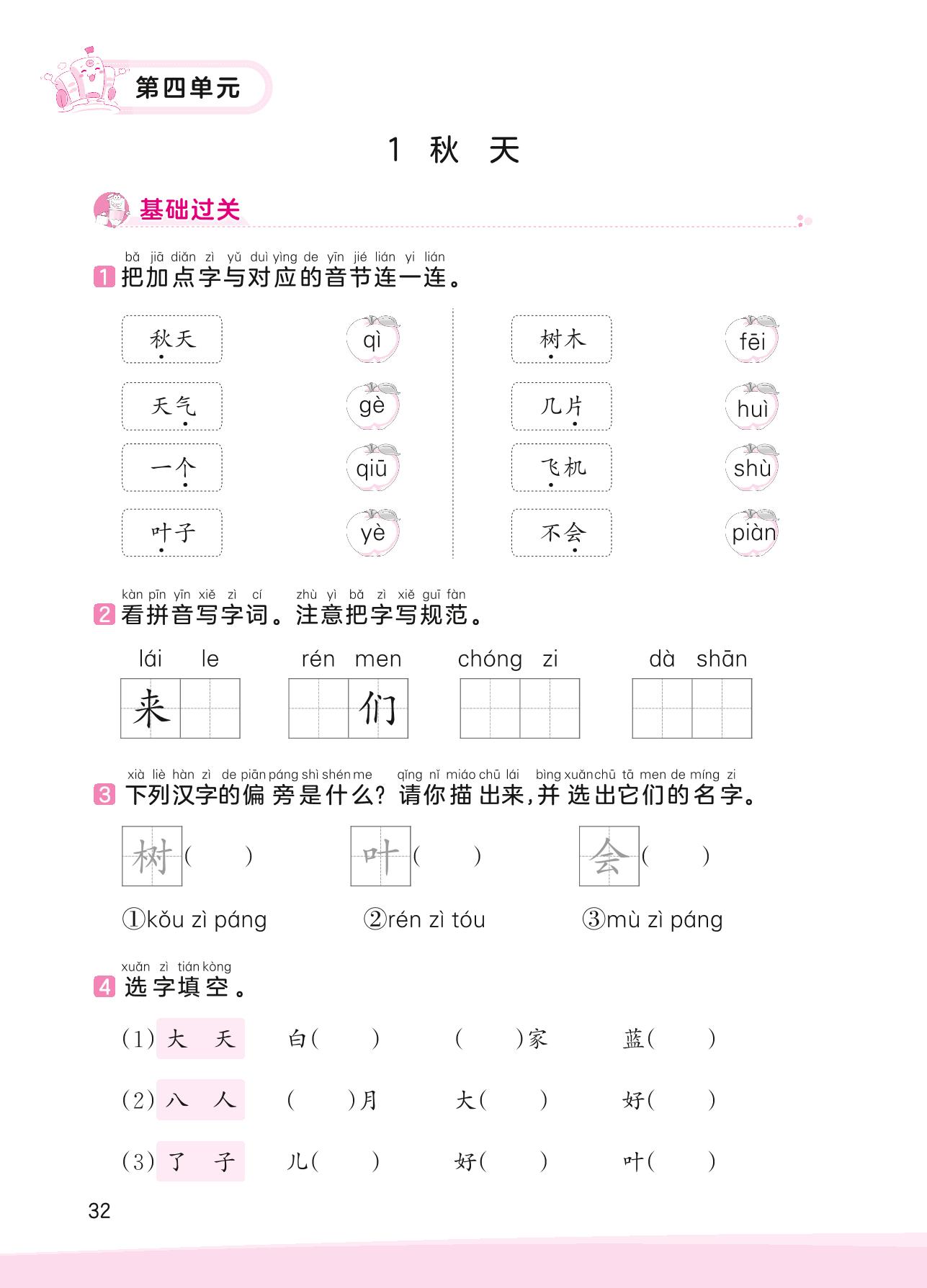 2023上册一年级语文人教版 第四单元 自然——1 秋天