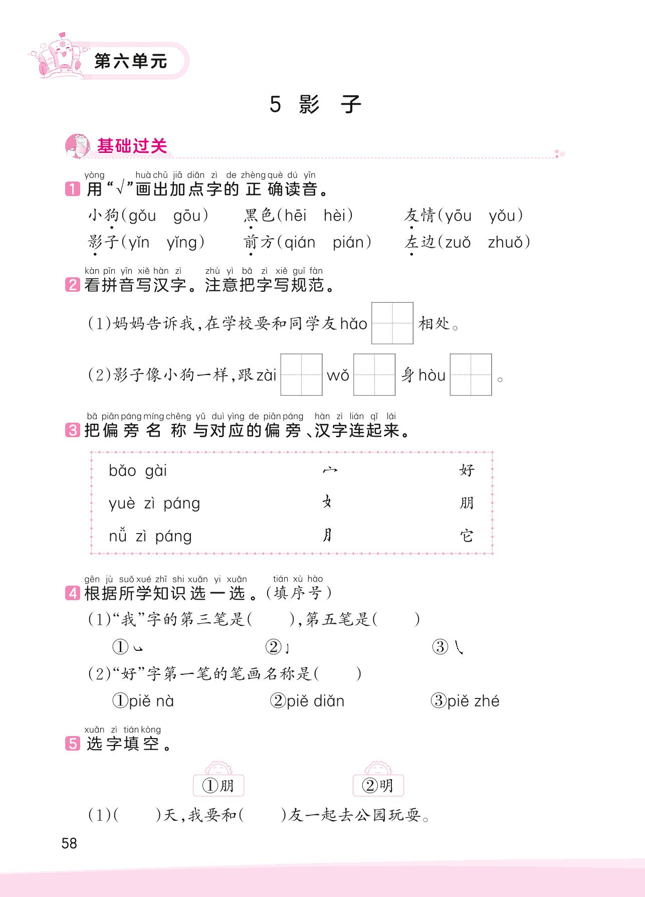 2023上册一年级语文人教版 第六单元 想象——5 影子