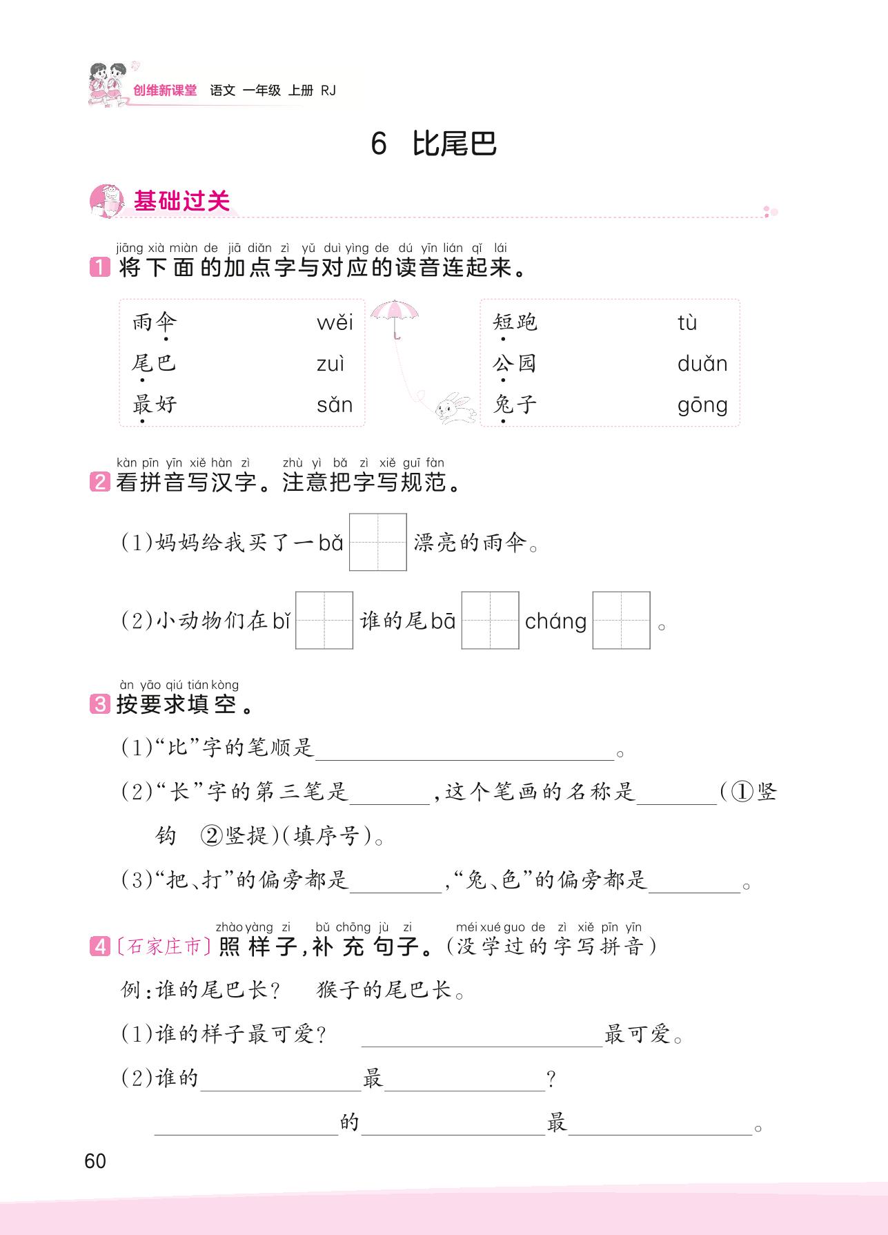 2023上册一年级语文人教版 第六单元 想象——6 比尾巴