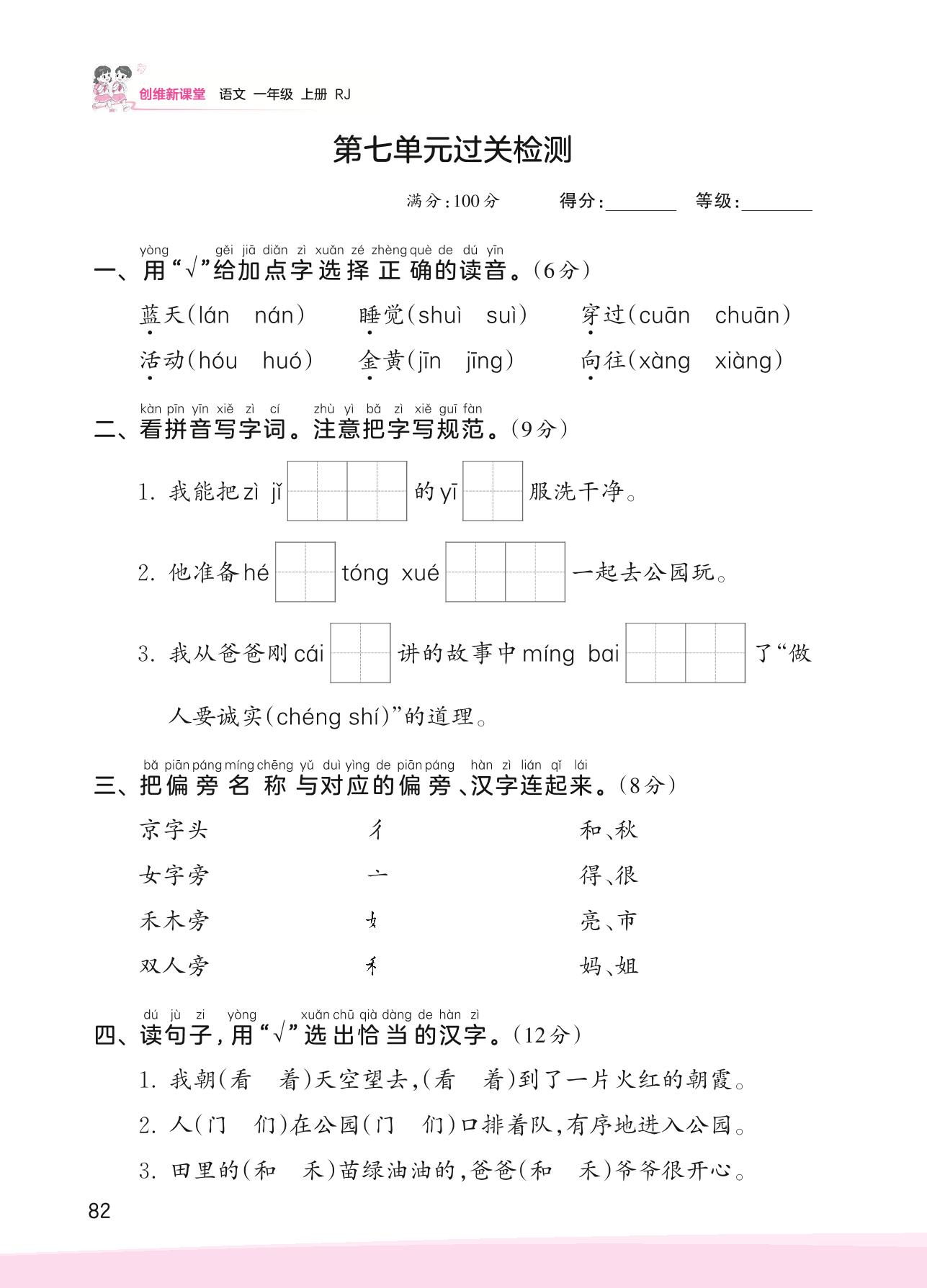 一年级语文人教版上册单元卷