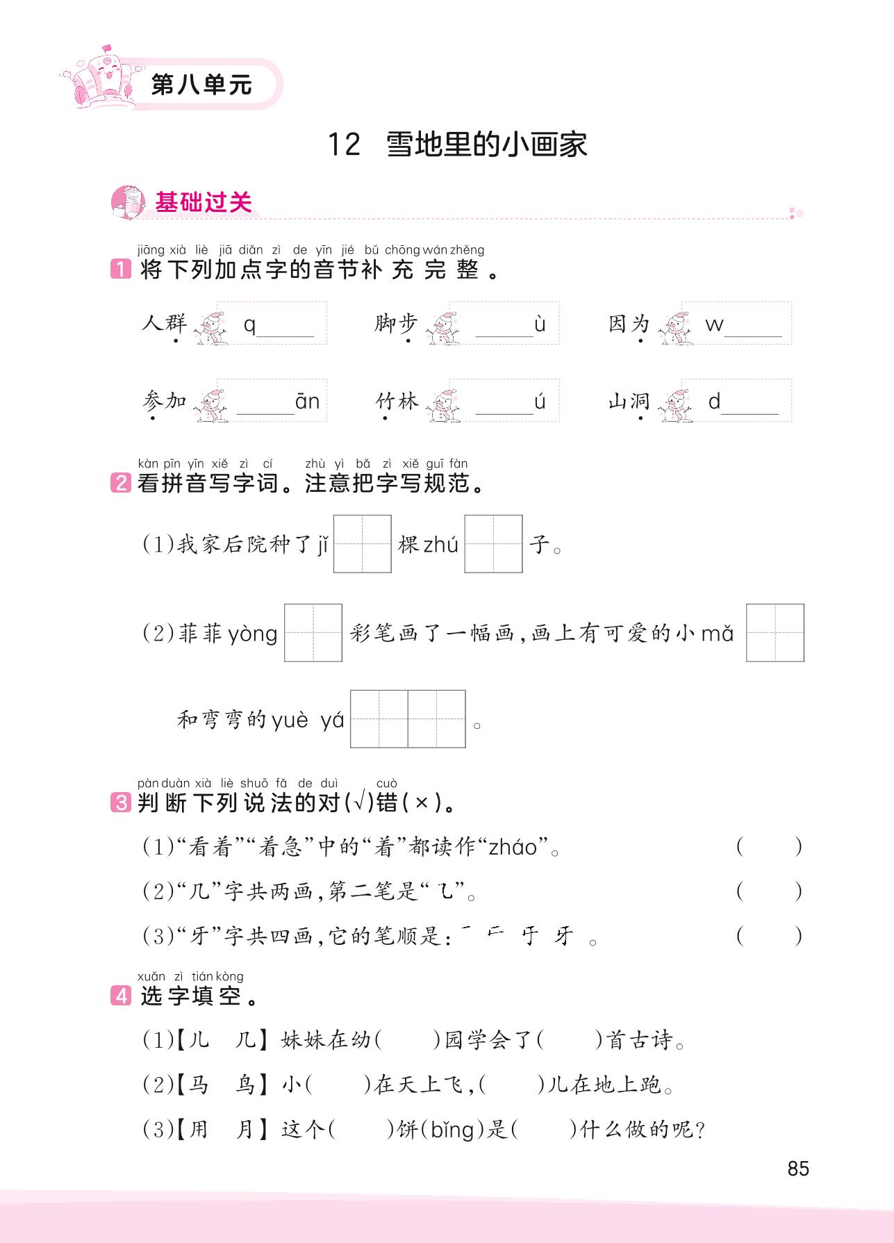 2023上册一年级语文人教版 第八单元 观察——12 雪地里的小画家