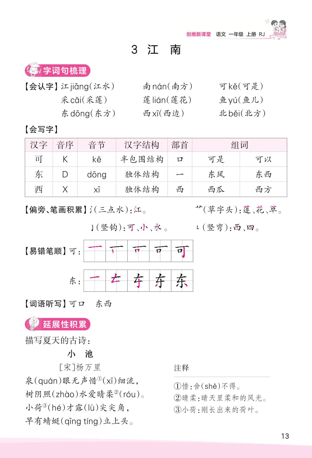 2023上册一年级语文人教版 助学手册 第四单元——3 江南