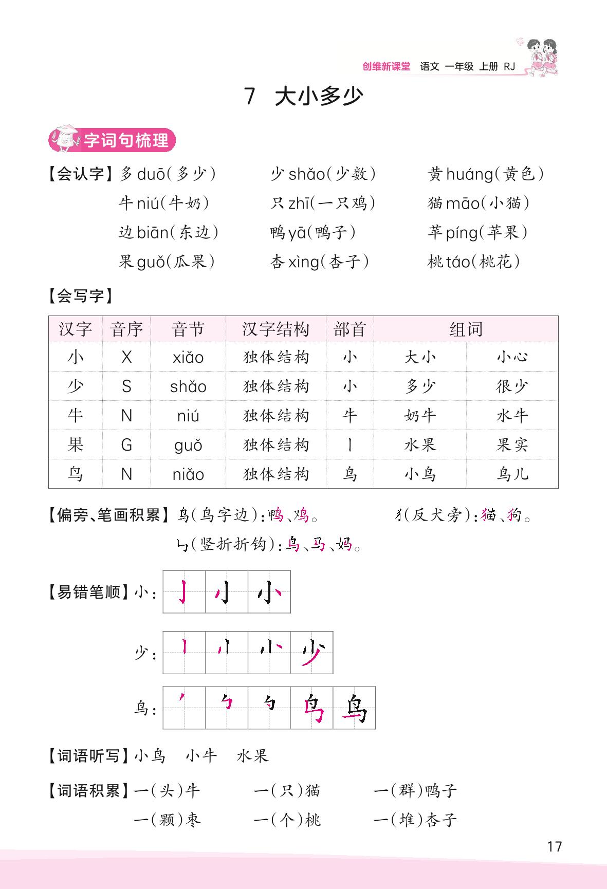 2023上册一年级语文人教版 助学手册 第五单元——7 大小多少