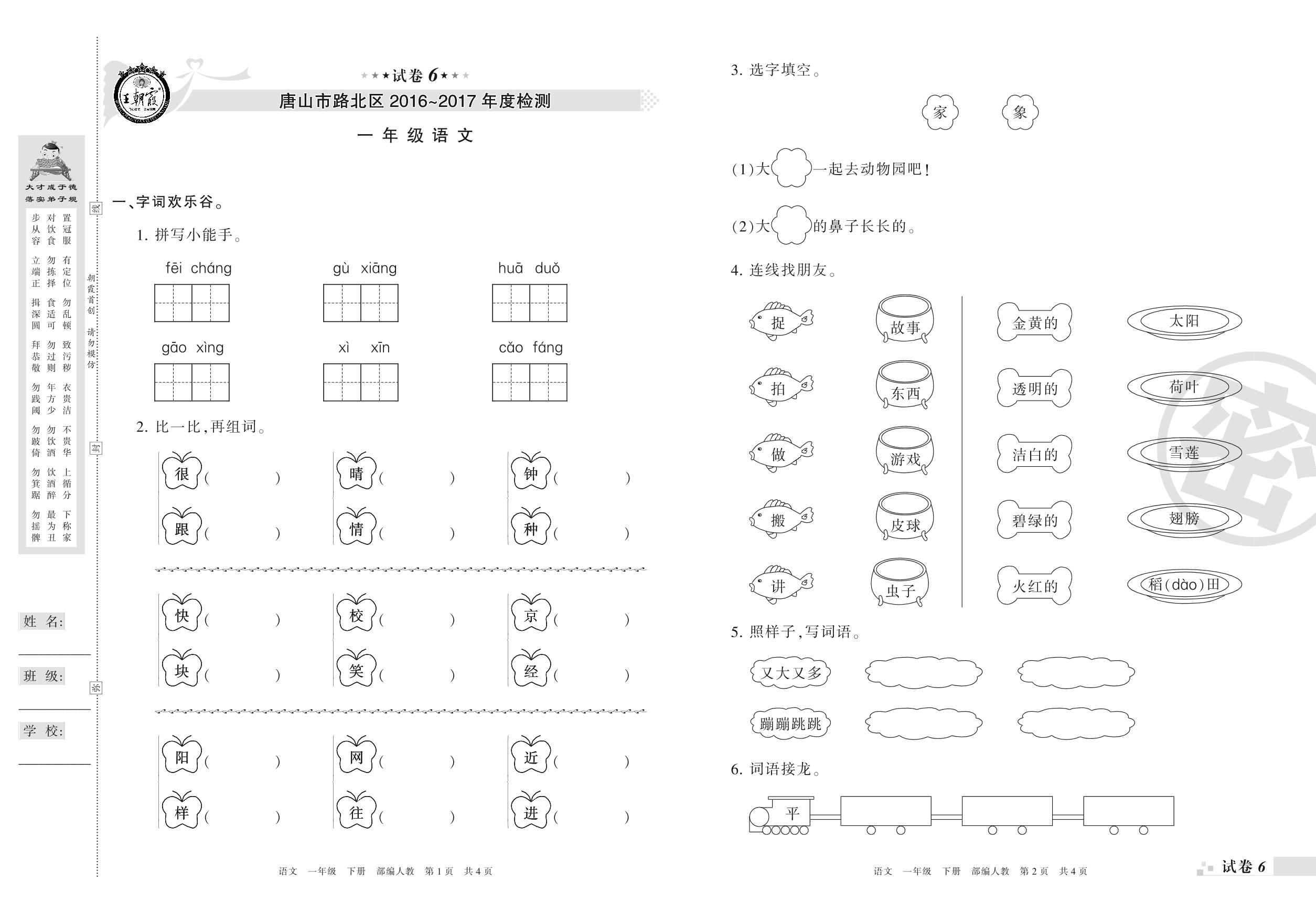 2016-2017学年第二学期唐山市路北区一年级语文试卷(人教版)【6】