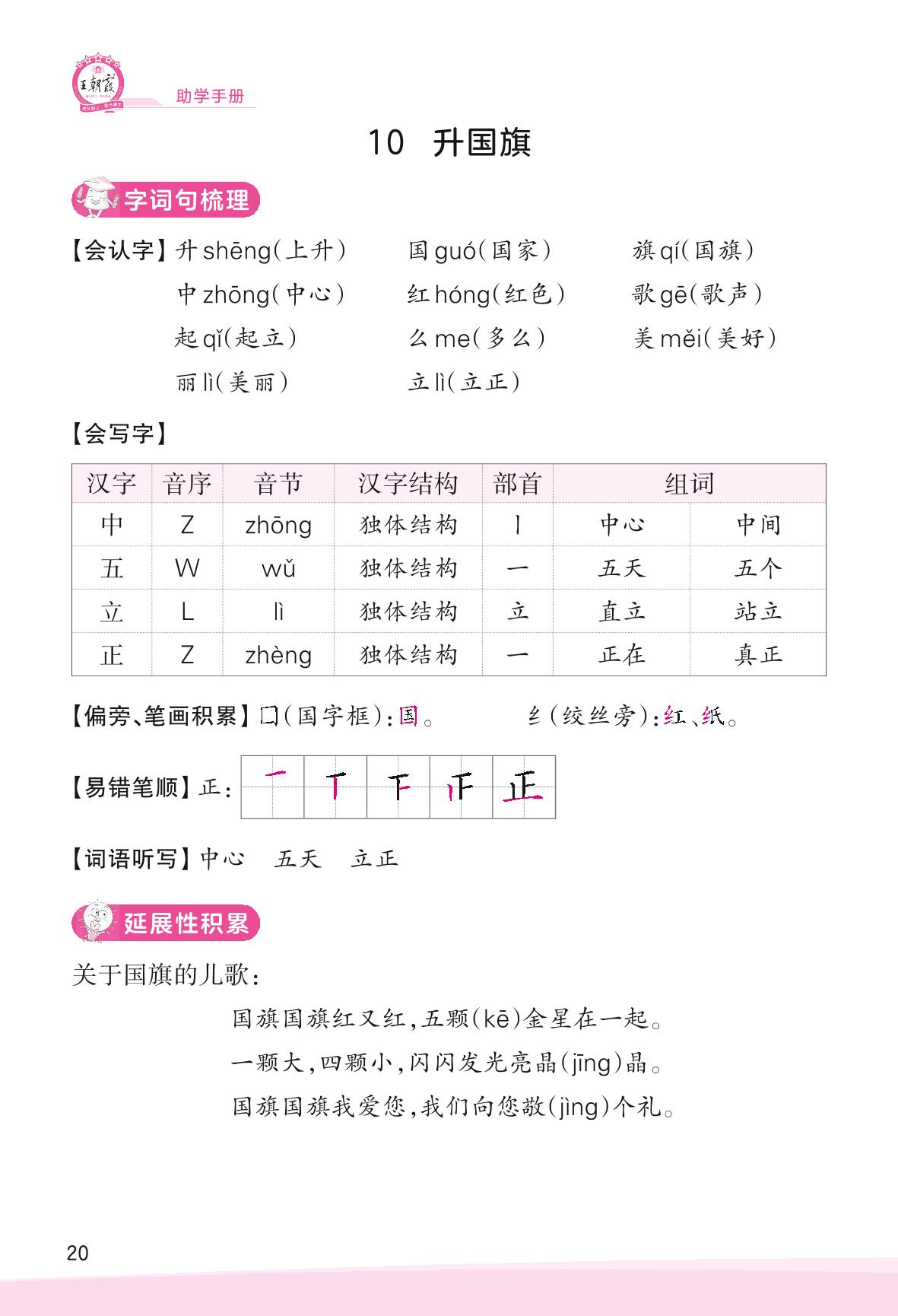 2023上册一年级语文人教版 助学手册 第五单元——10 升国旗