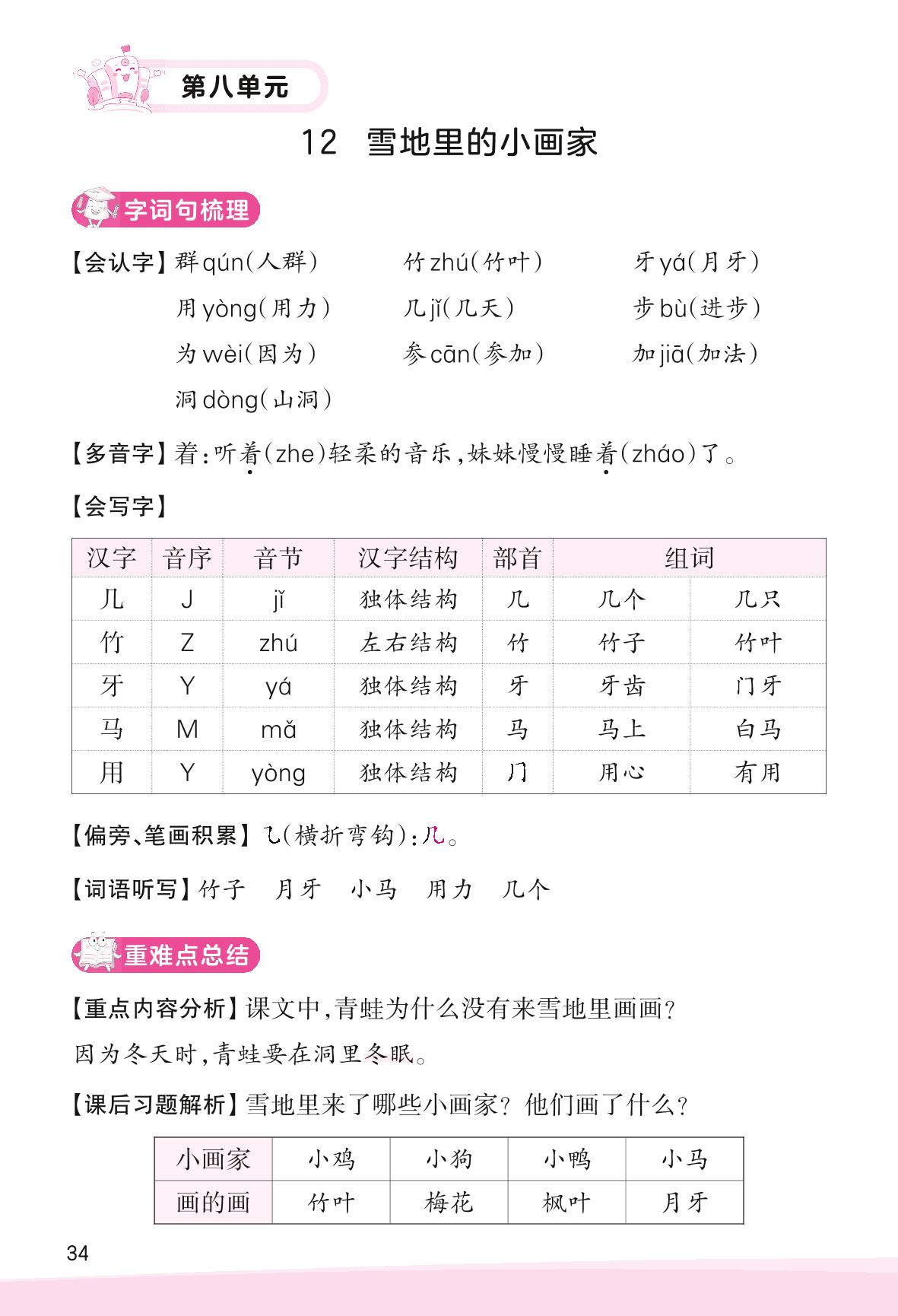 2023上册一年级语文人教版 助学手册 第八单元——12 雪地里的小画家