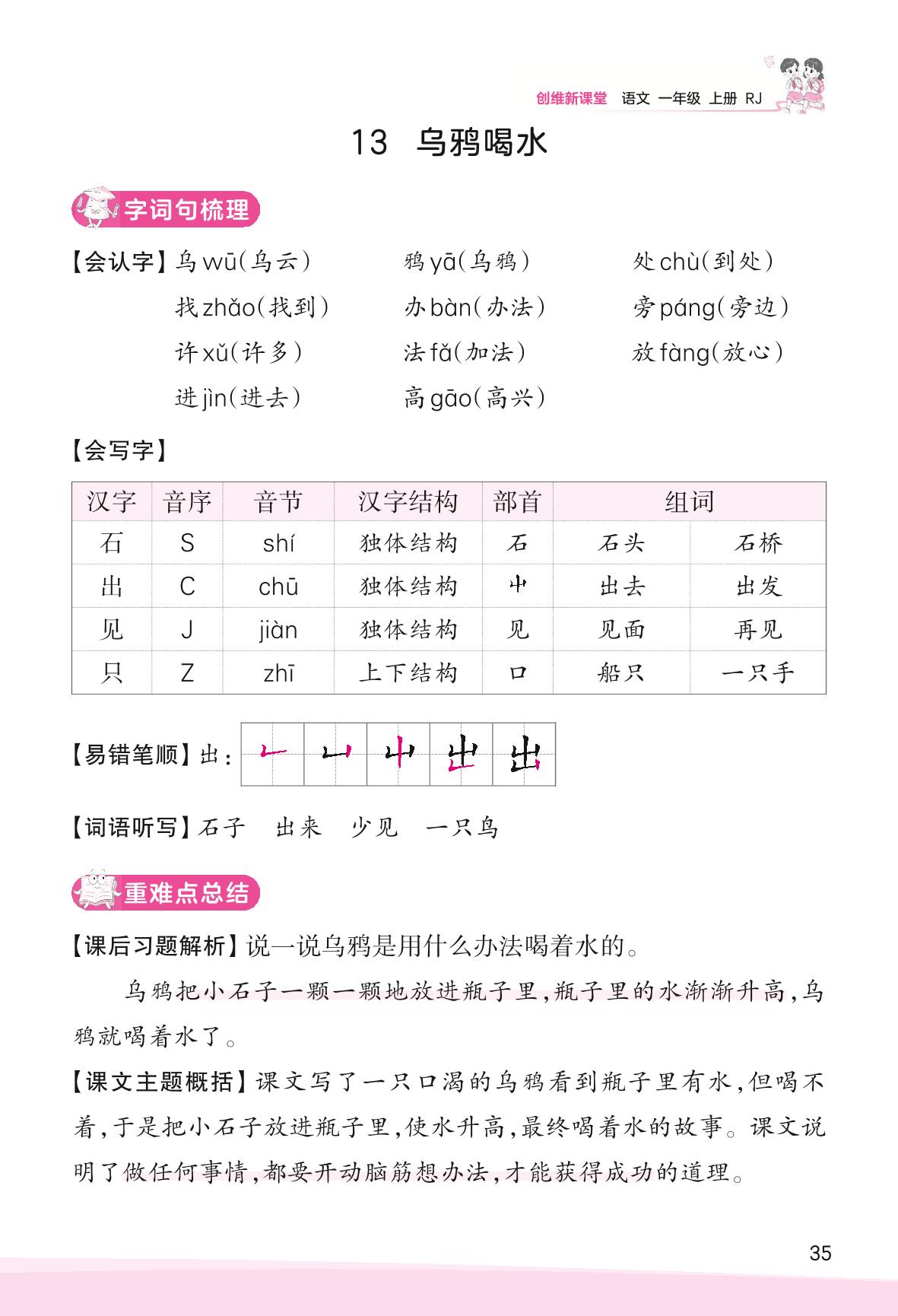 2023上册一年级语文人教版 助学手册 第八单元——13 乌鸦喝水