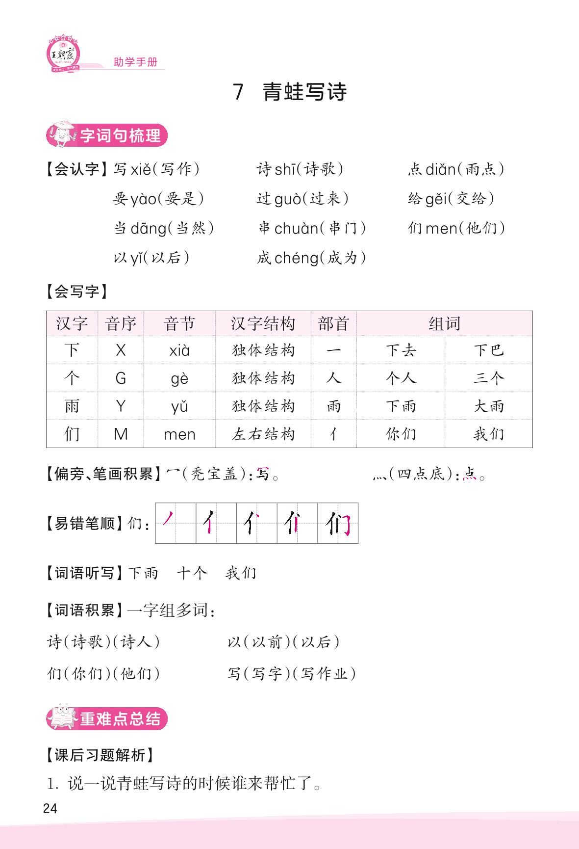 2023上册一年级语文人教版 助学手册 第六单元——7 青蛙写诗