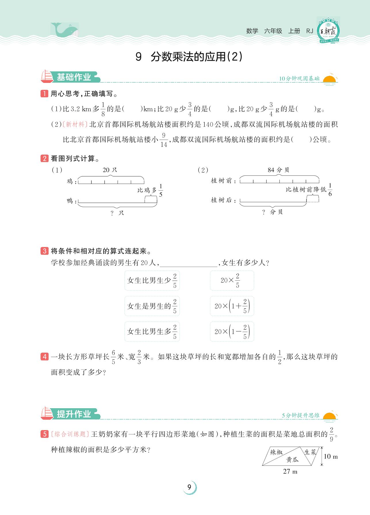 2023上册六年级数学人教版 第一单元 分数乘法——9 分数乘法的应用(2)