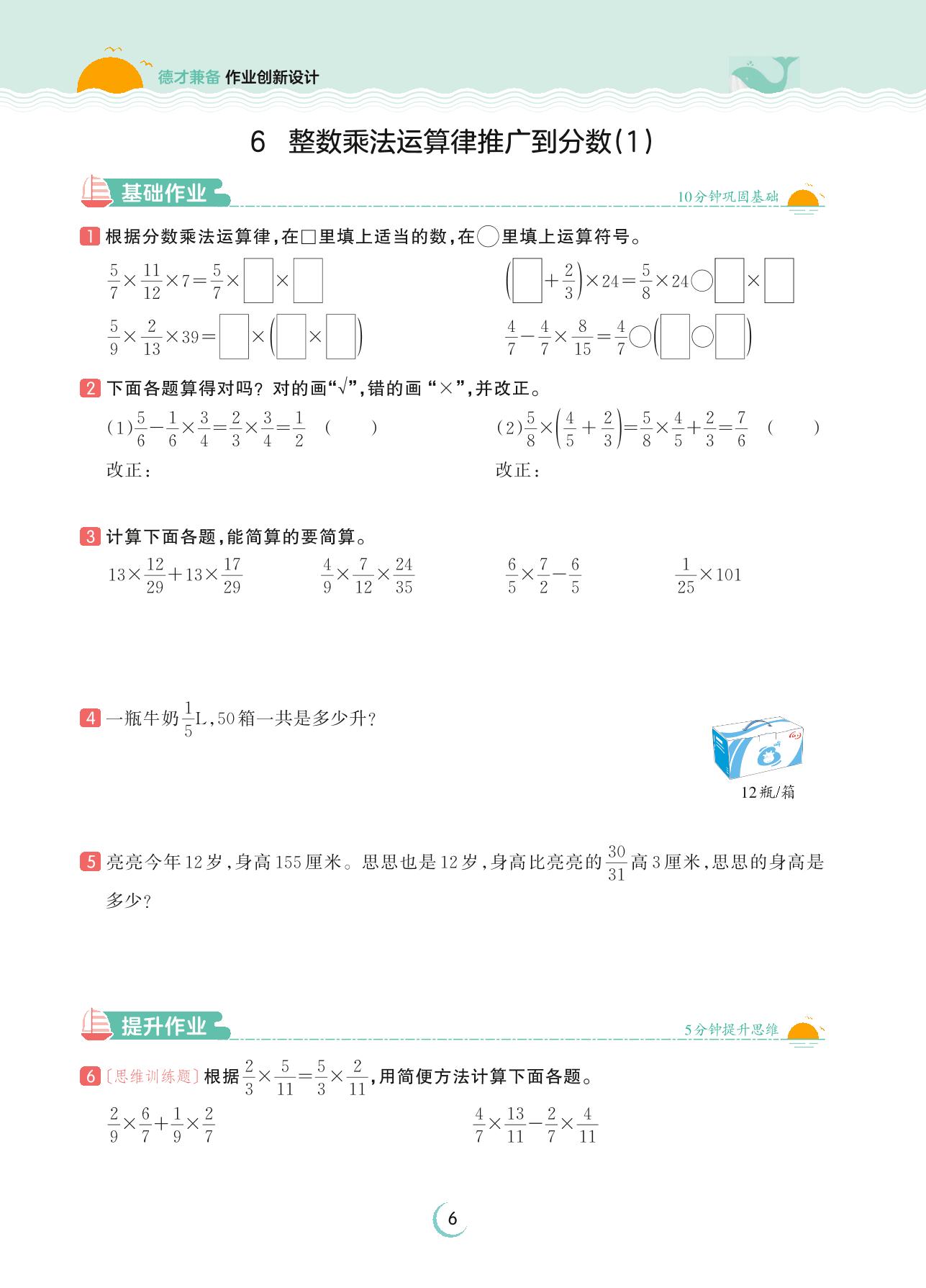 2023上册六年级数学人教版 第一单元 分数乘法——6 整数乘法运算律推广到分数(1)