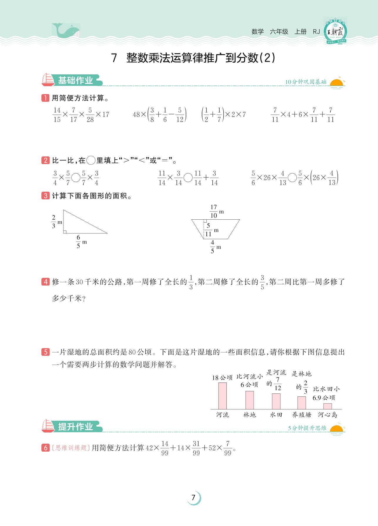 2023上册六年级数学人教版 第一单元 分数乘法——7 整数乘法运算律推广到分数(2)
