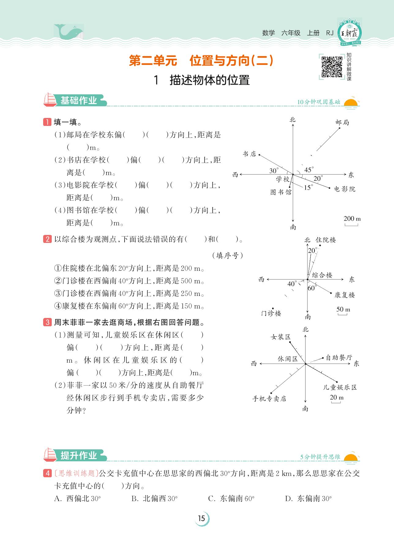 2023上册六年级数学人教版 第二单元 位置与方向(二)——1 描述物体的位置