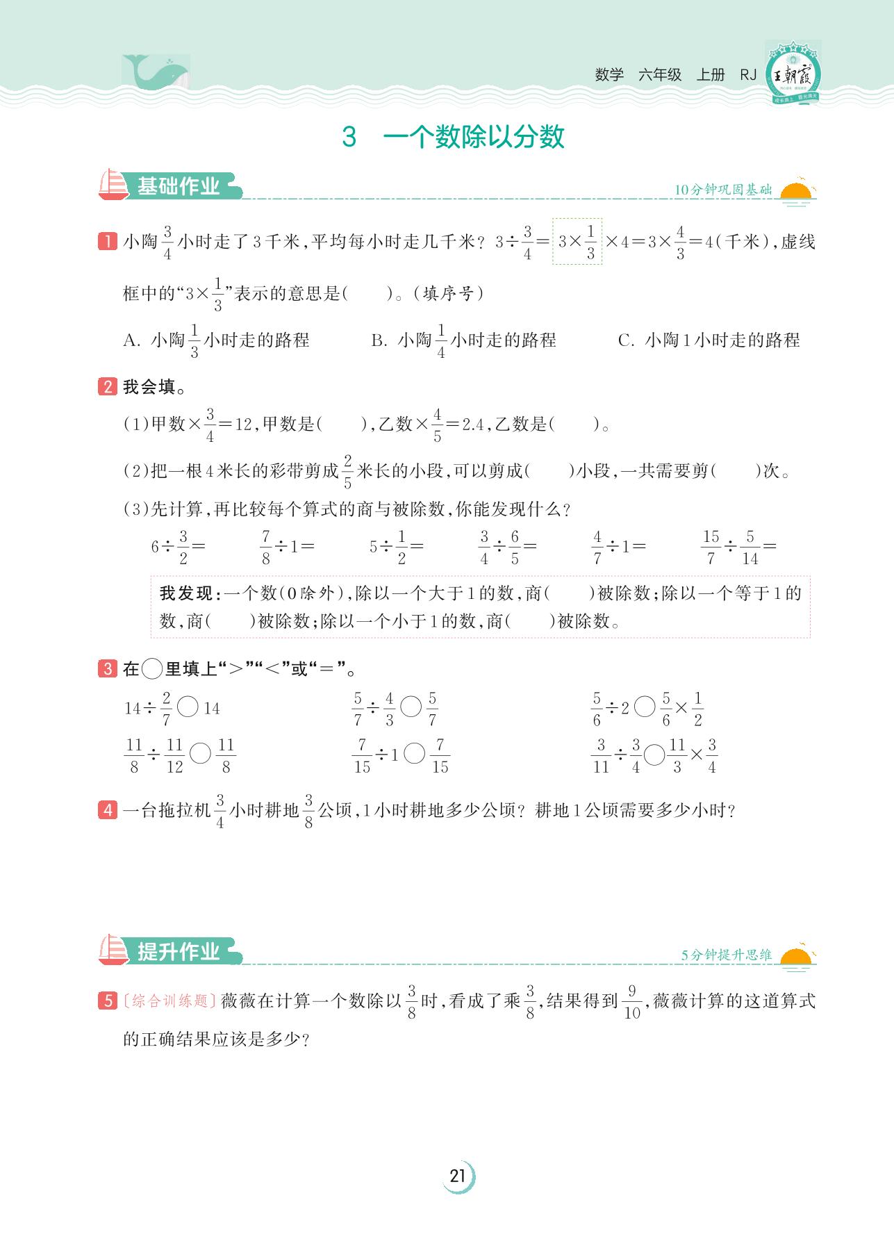 2023上册六年级数学人教版 第三单元 分数除法——3 一个数除以分数