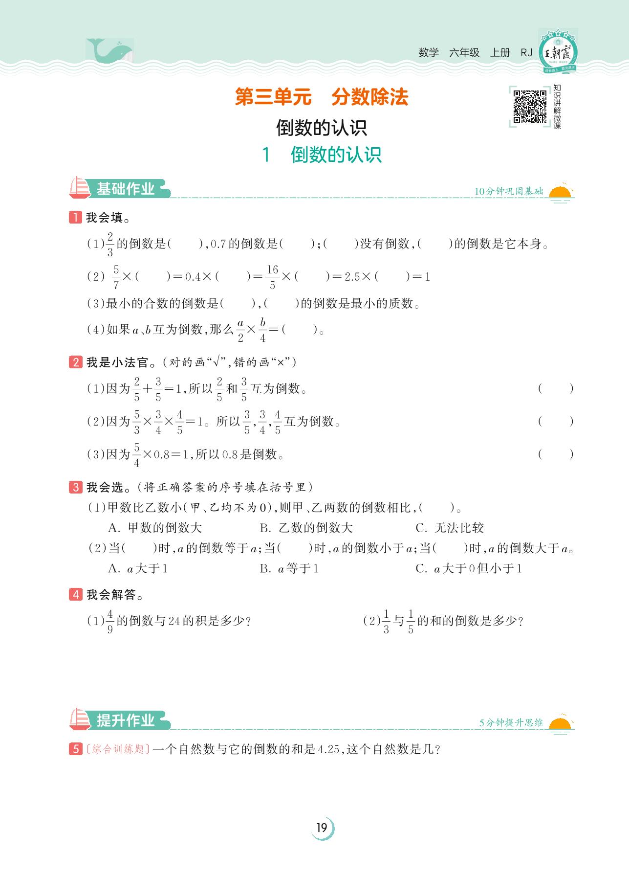 2023上册六年级数学人教版 第三单元 分数除法——1 倒数的认识