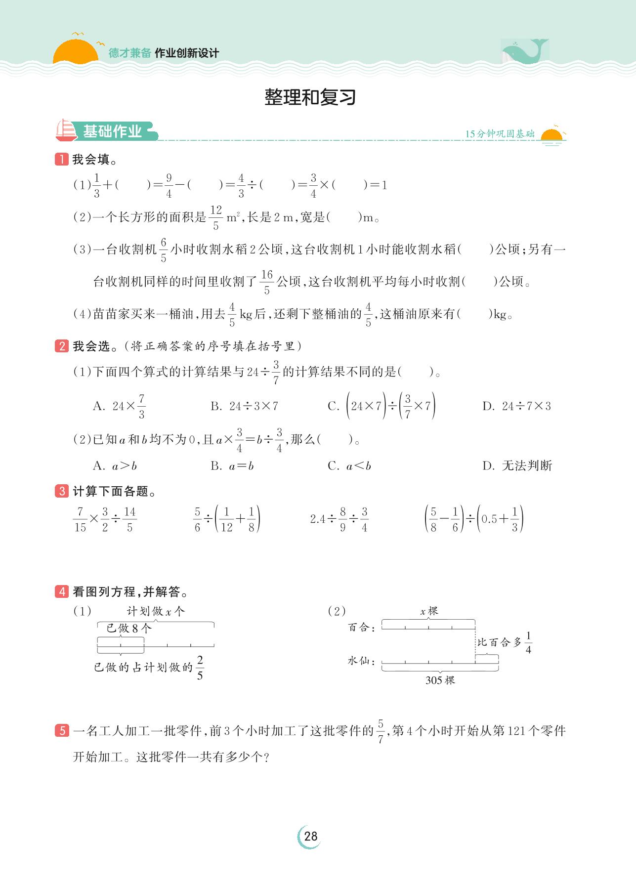2023上册六年级数学人教版 第三单元 分数除法——整理和复习
