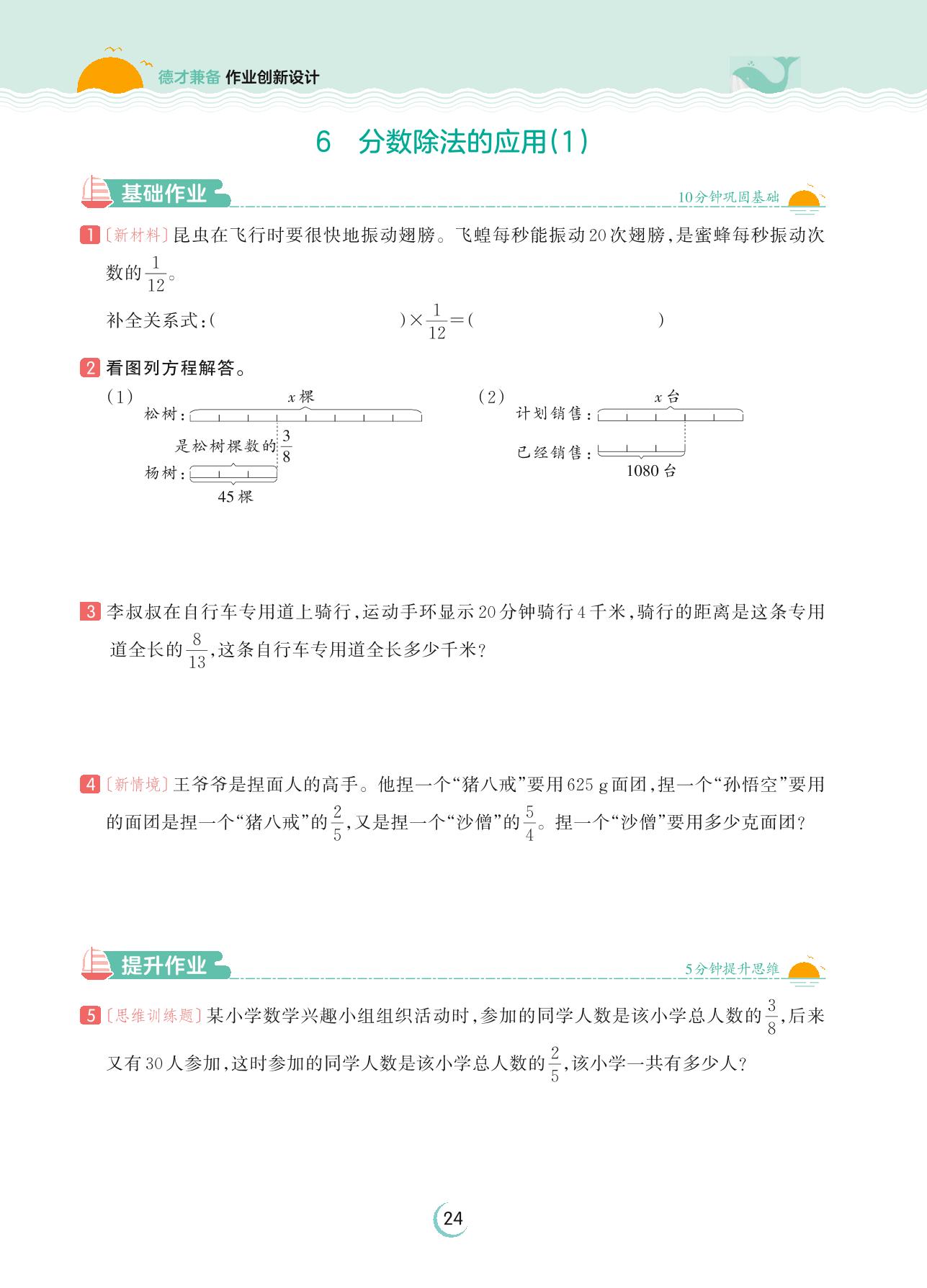 2023上册六年级数学人教版 第三单元 分数除法——6 分数除法的应用(1)