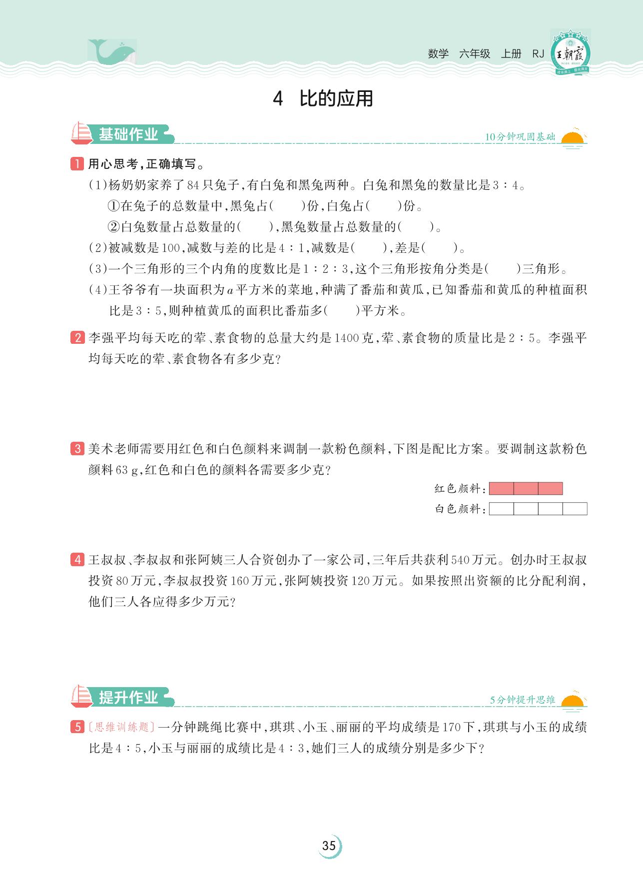 2023上册六年级数学人教版 第四单元 比——4 比的应用
