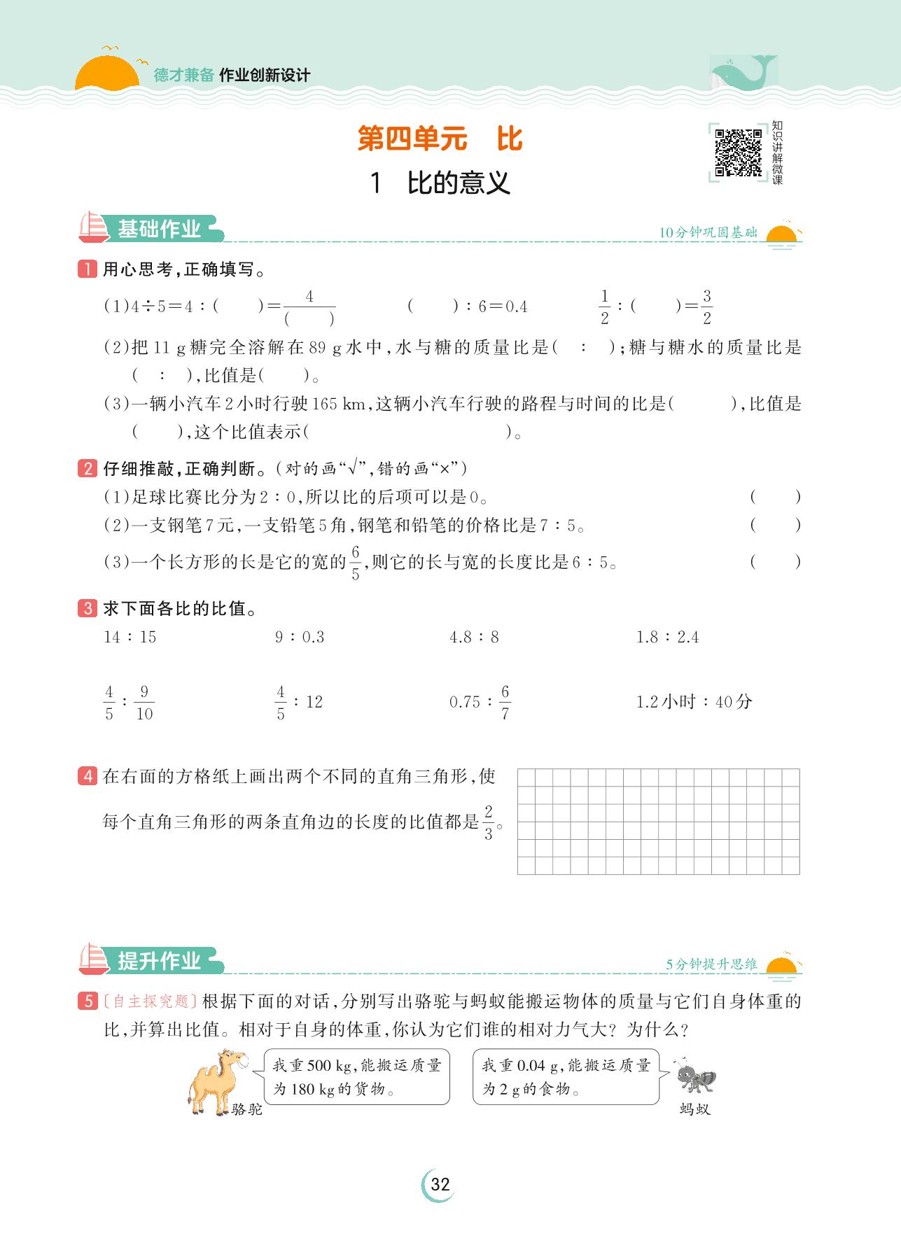 2023上册六年级数学人教版 第四单元 比——1 比的意义