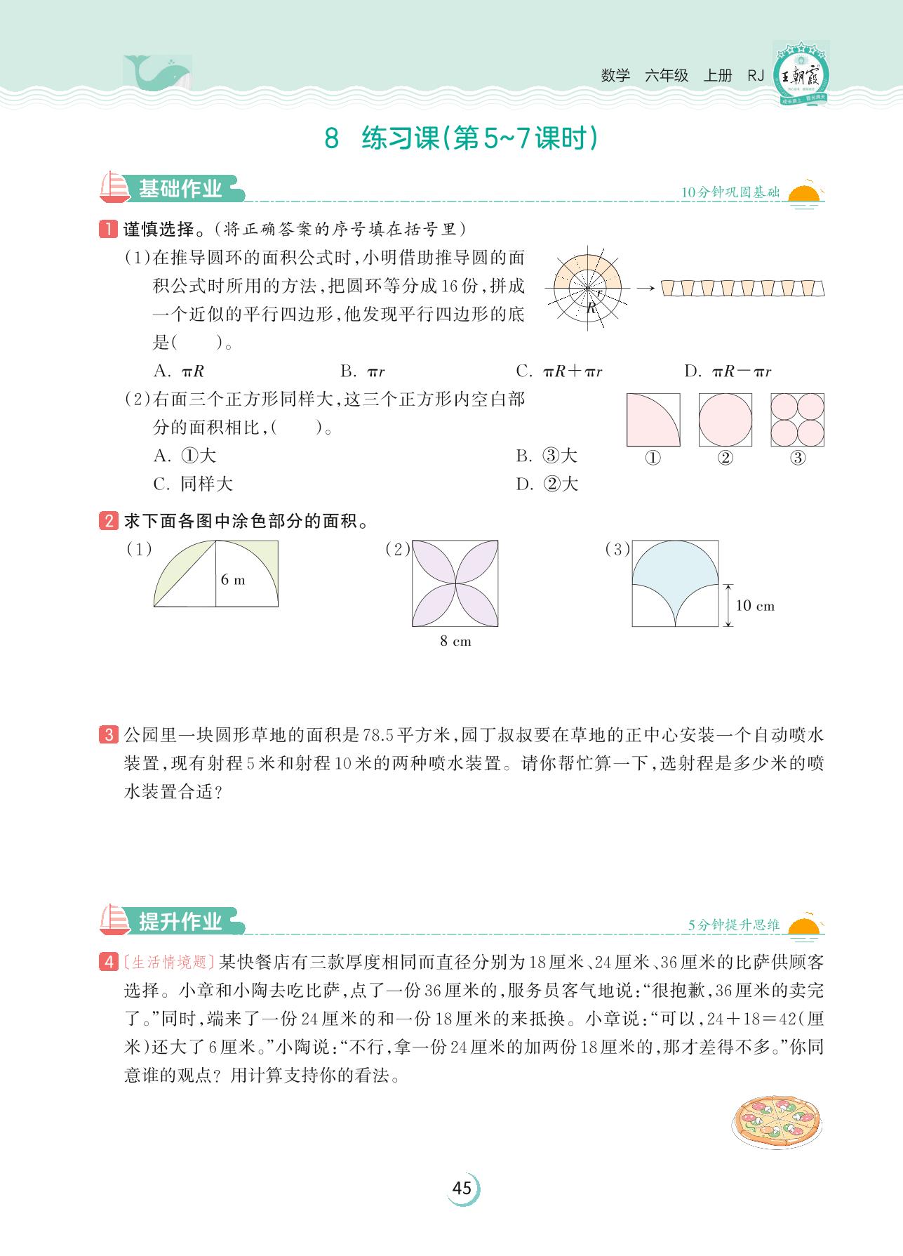 2023上册六年级数学人教版 第五单元 圆——8 练习课(第5~7课时)